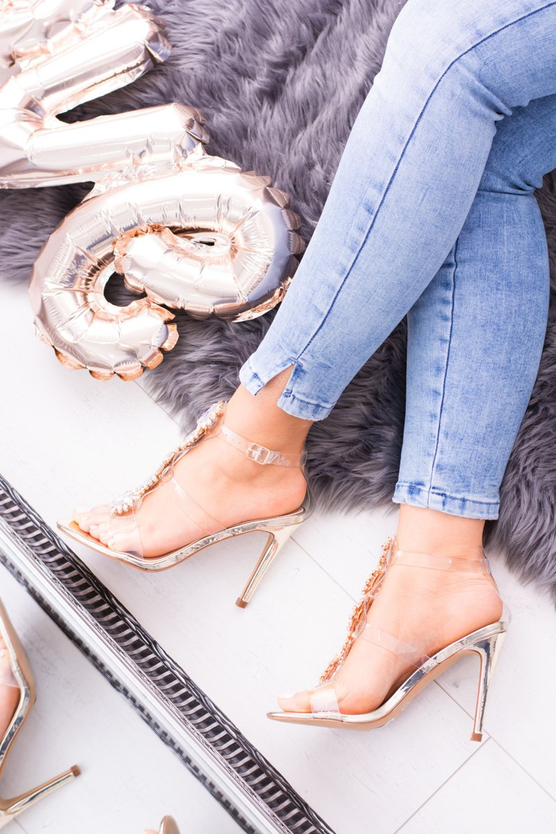 Lu Boo zlaté sandály na vysoké podpatky zirkony Serenada