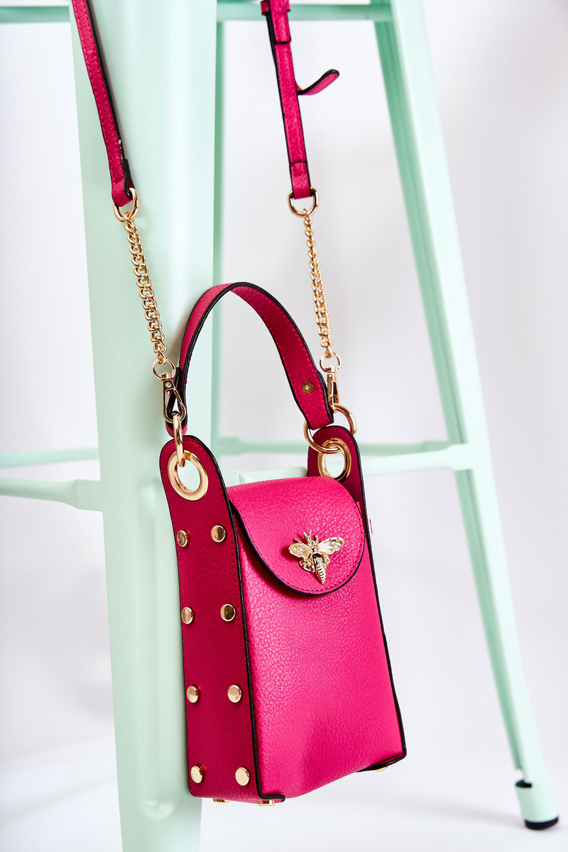 Malá dámská kabelka z eko kůže. Má neodnímatelnou, nenastavitelnou rukojeť. Přihrádka se uzavírá klopou se západkou. Na přední straně je ozdobný znak v podobě hmyzu. Na bocích tašky jsou umístěny ozdobné cvočky. Taška je navíc dodávána s nastavitelným odnímatelným popruhem s řetízkem. Tato taška je hitem sezóny, tak už na nic nečekejte a kupte si ji ještě dnes! Podívejte se také na další modely tašek dostupné v naší nabídce!