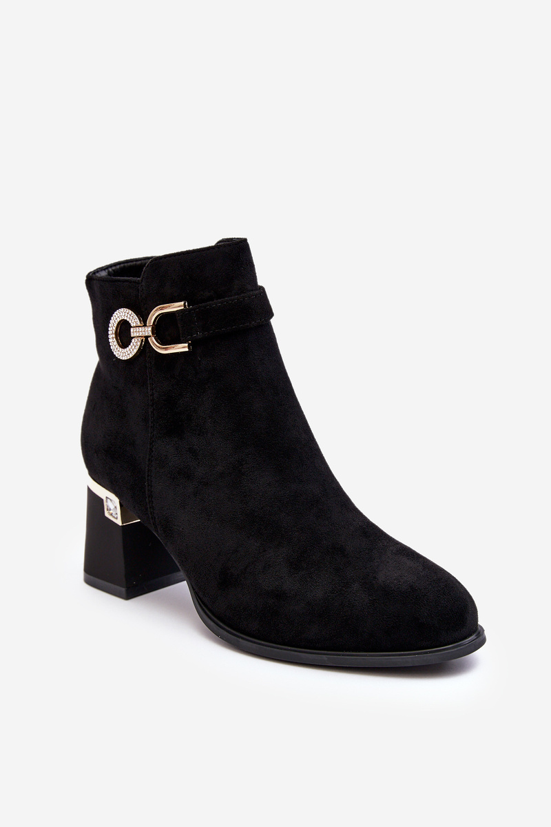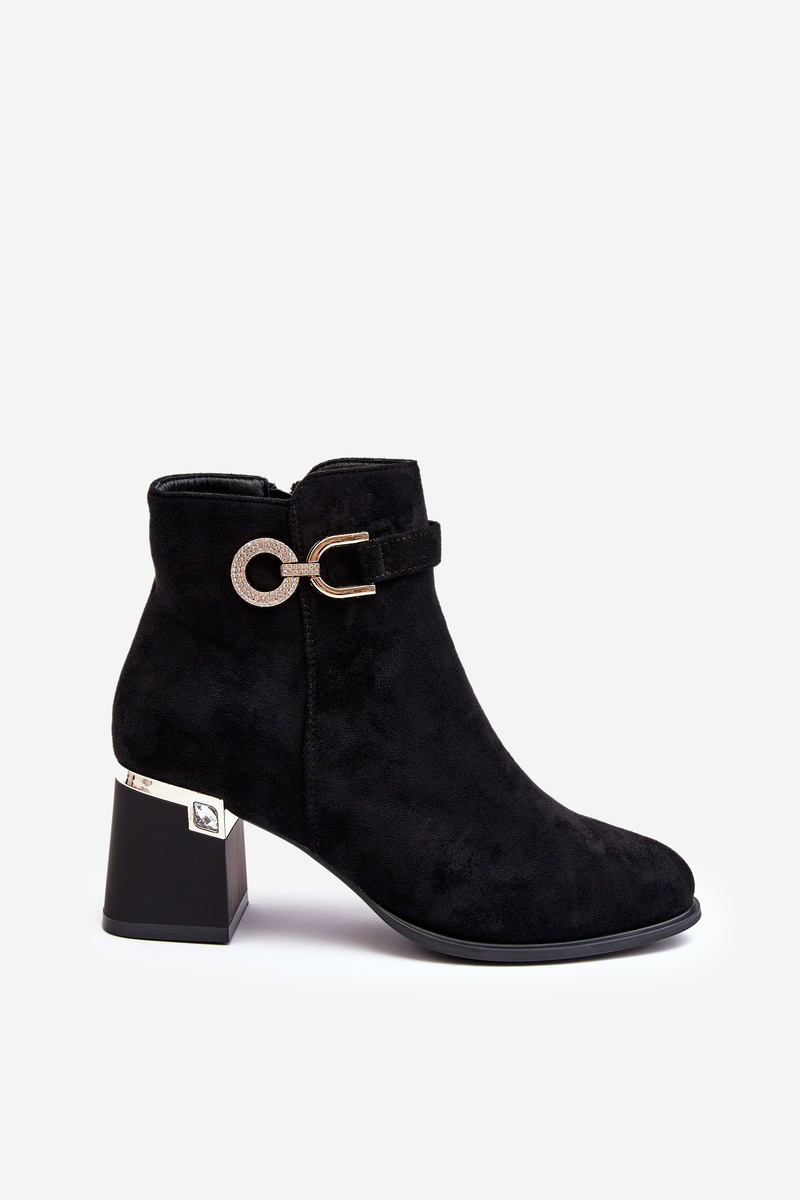 Tento ženský botek je upevněn na zdobeném podpatku v podobě sloupku. Tento model je vyroben z eko semiše. Na boku botky je umístěna ozdoba s kameny, z druhé strany je zip, který usnadňuje obouvání. Vnitřek tohoto botku není izolován. Zesílený špička poskytuje stabilitu.