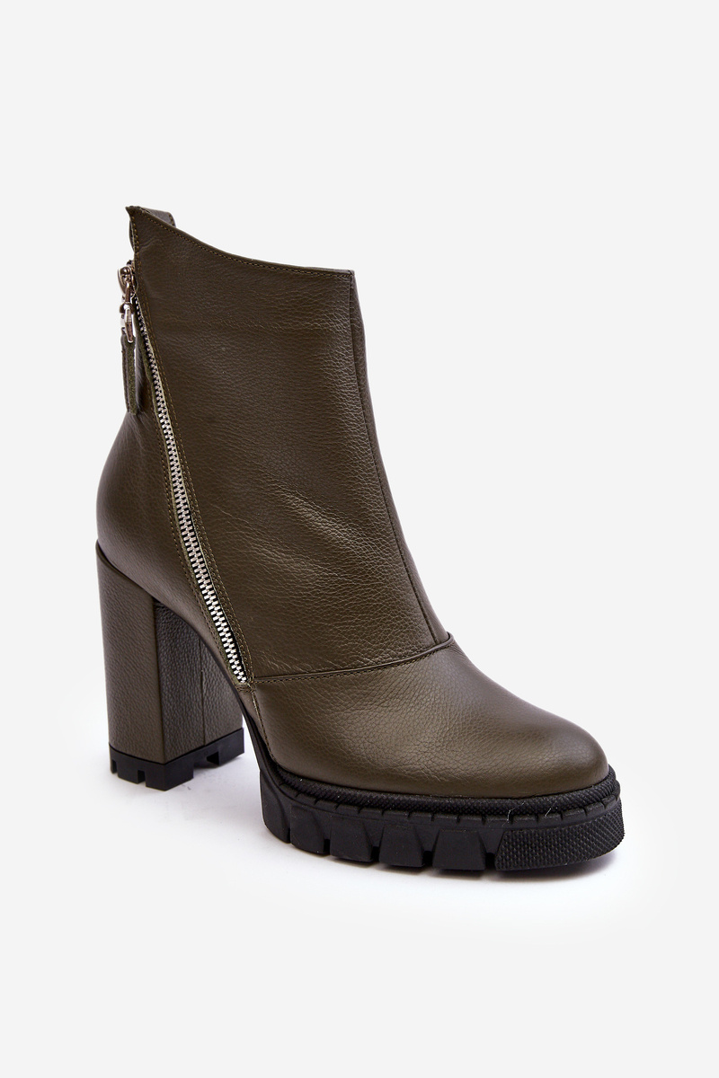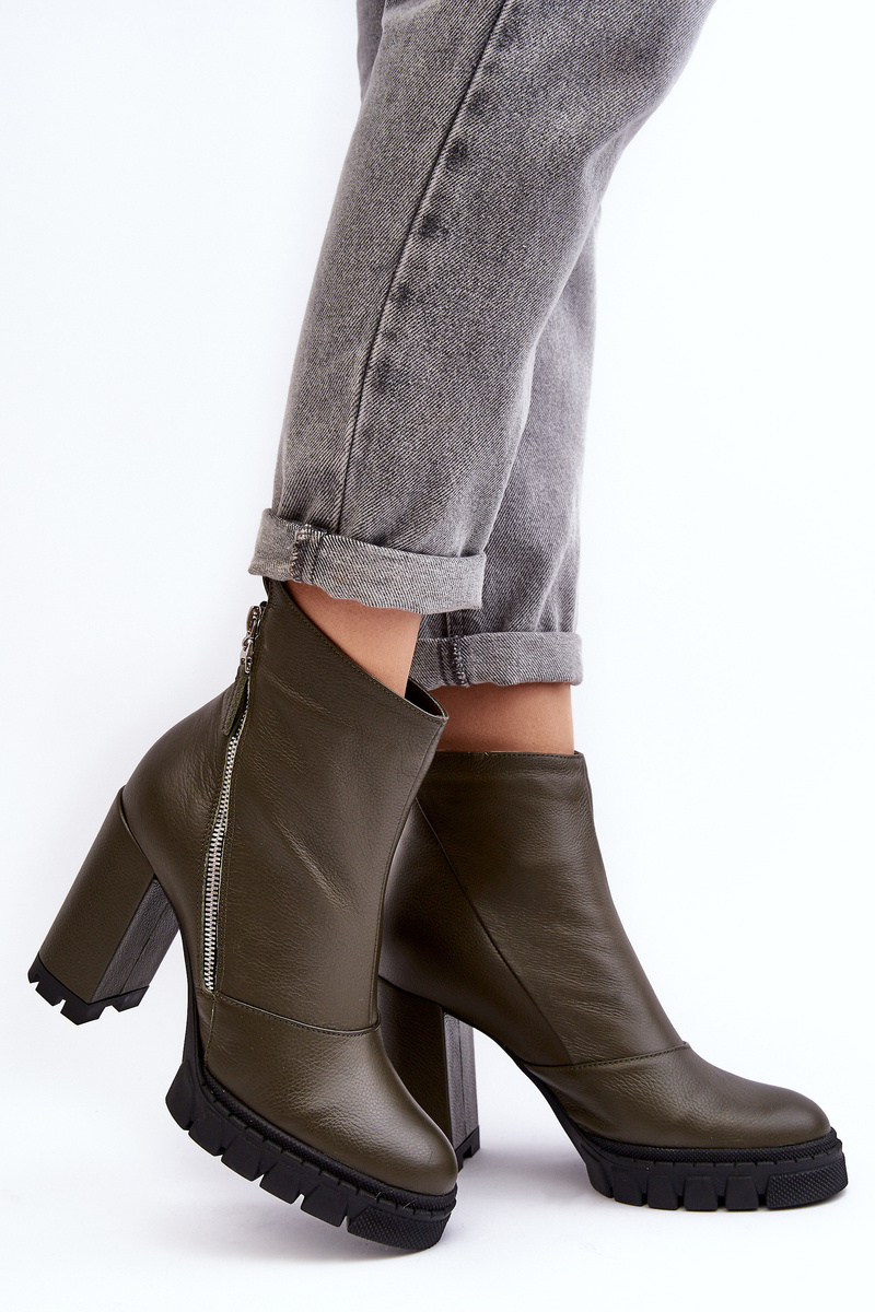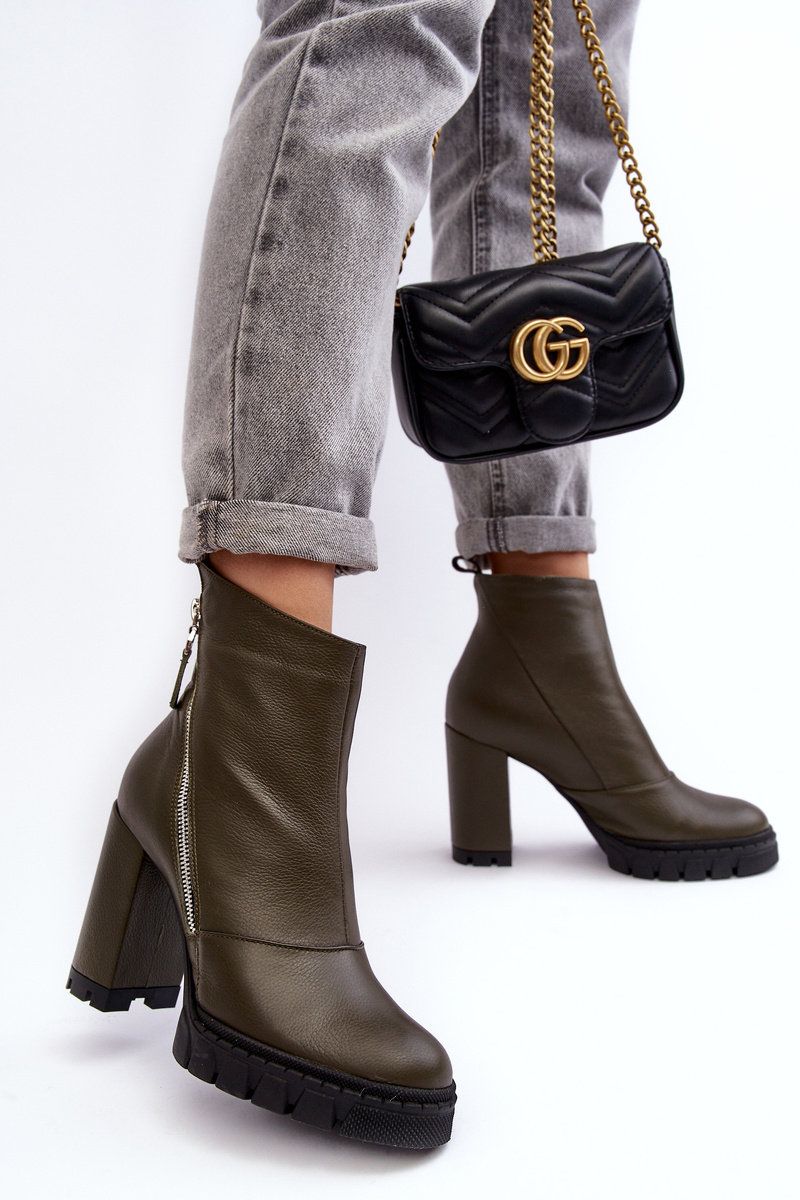 Modní Kožené Botky Na Podpatku Laura Messi 2509/195 Tmavě Zelené