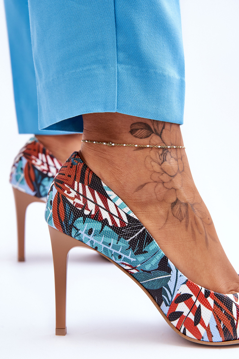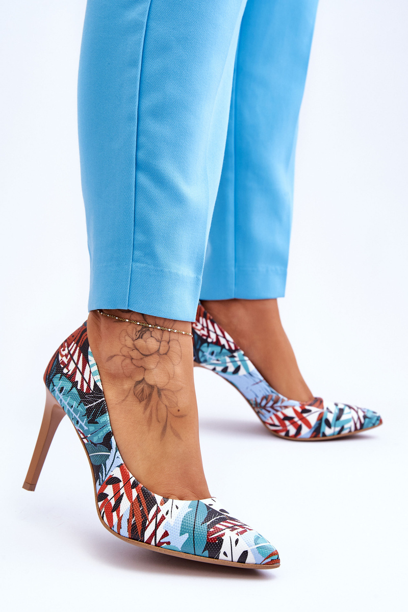 Módní kožené boty Lewski na vysokém podpatku 2659 Zeleno modrá