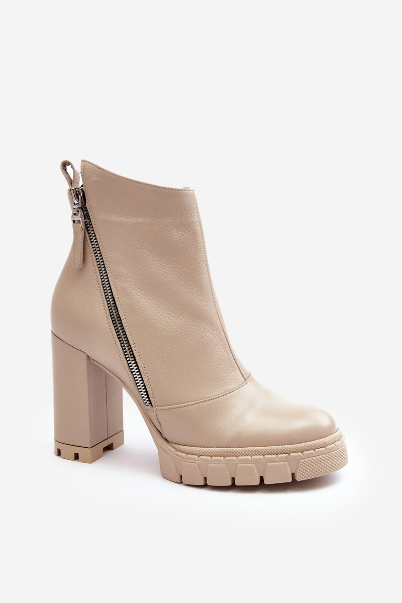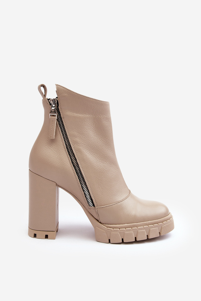 Modní Kožené Boty Na Podpatku Laura Messi 2509 Světle Béžové