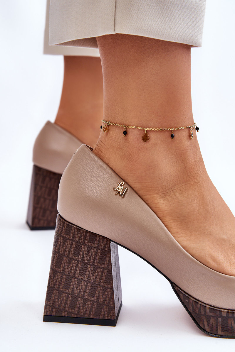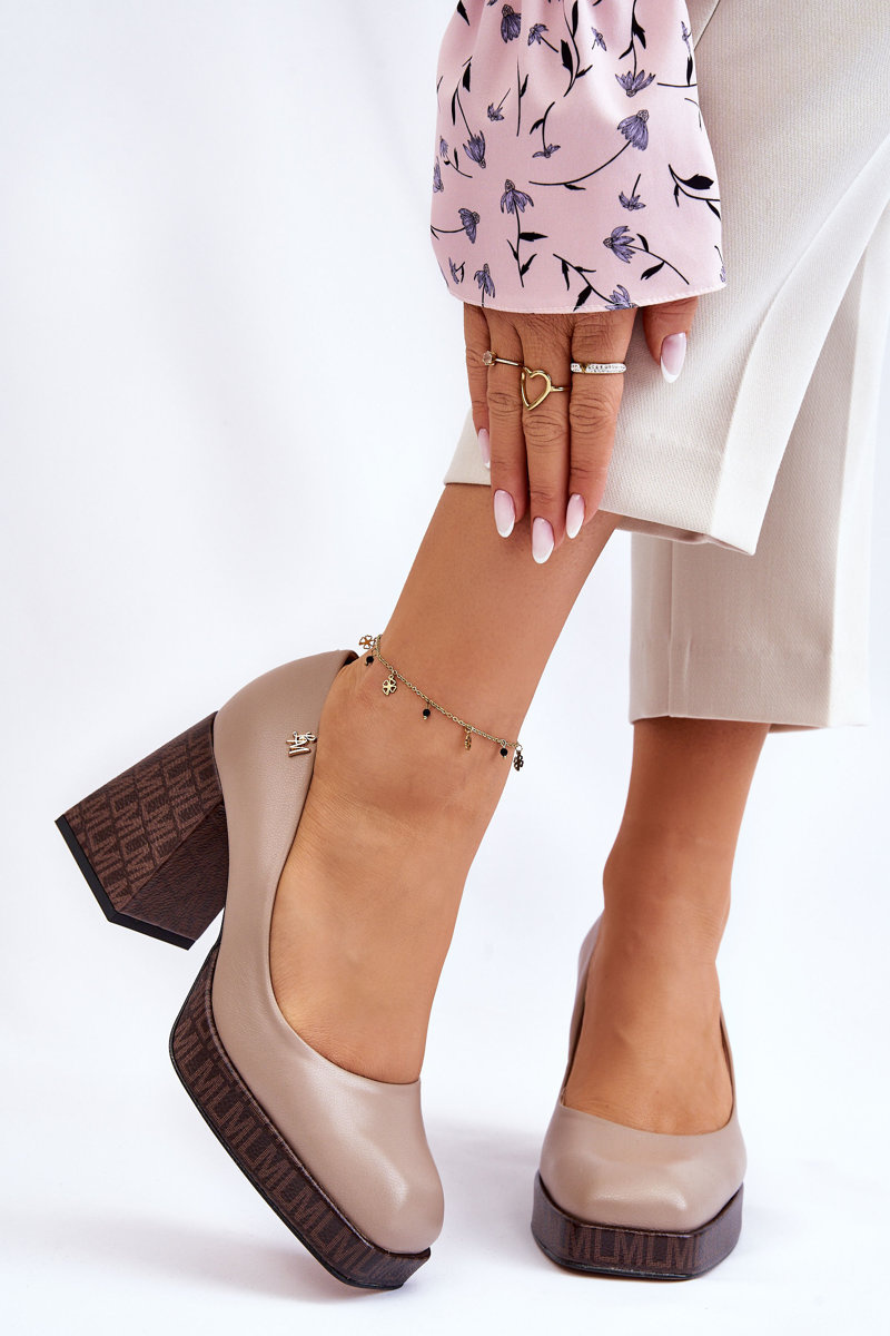 Módní lodičky jsou vyrobeny z vysoce kvalitní přírodní kůže. Na boku svršku mají ozdobné logo. Pohodlí vám zajistí měkká stélka a stabilní podpatek v podobě vyššího bloku. Lodičky mají vyztužený podpatek. Klasický model, nazouvací s hranatou špičkou. Při výběru velikosti se řiďte tabulkou velikostí.