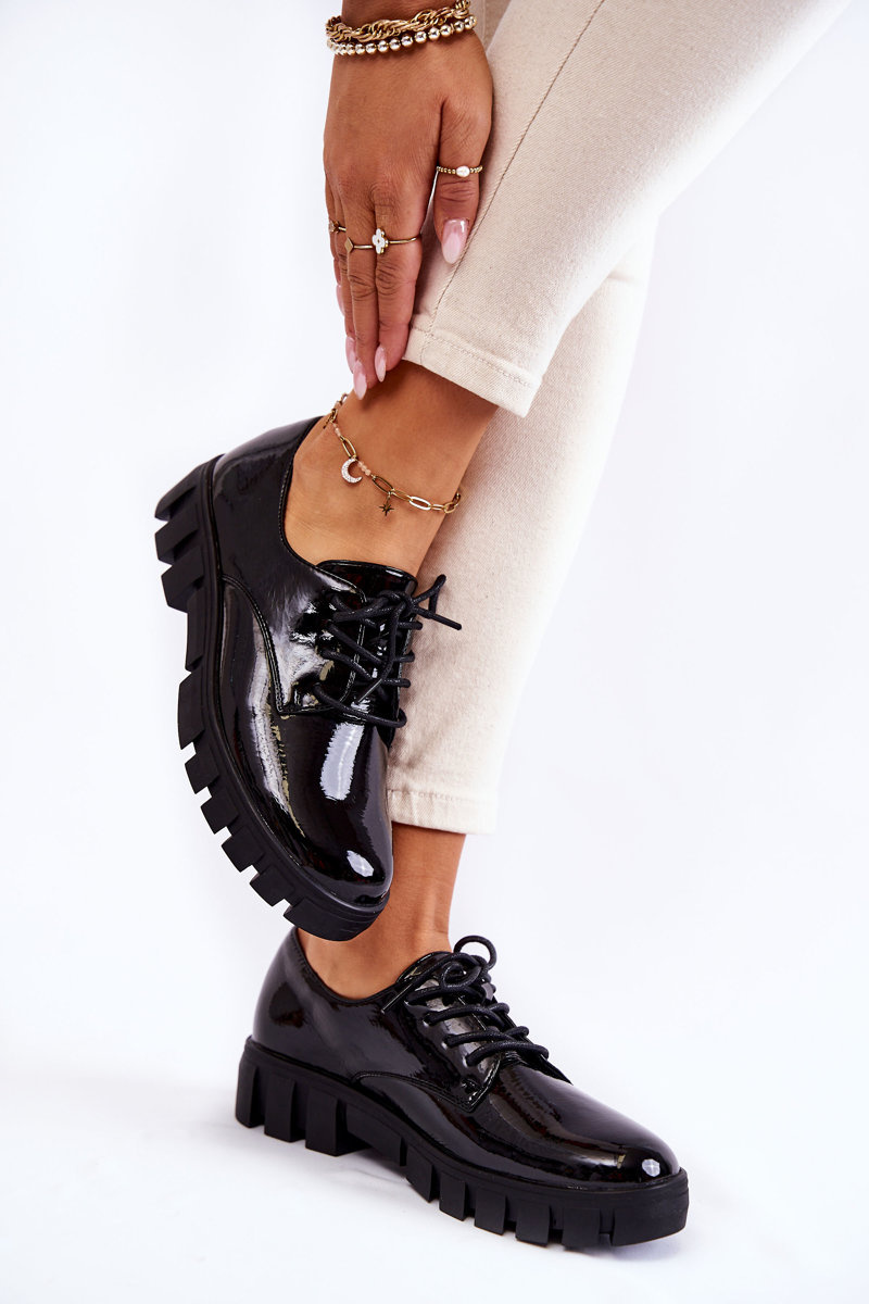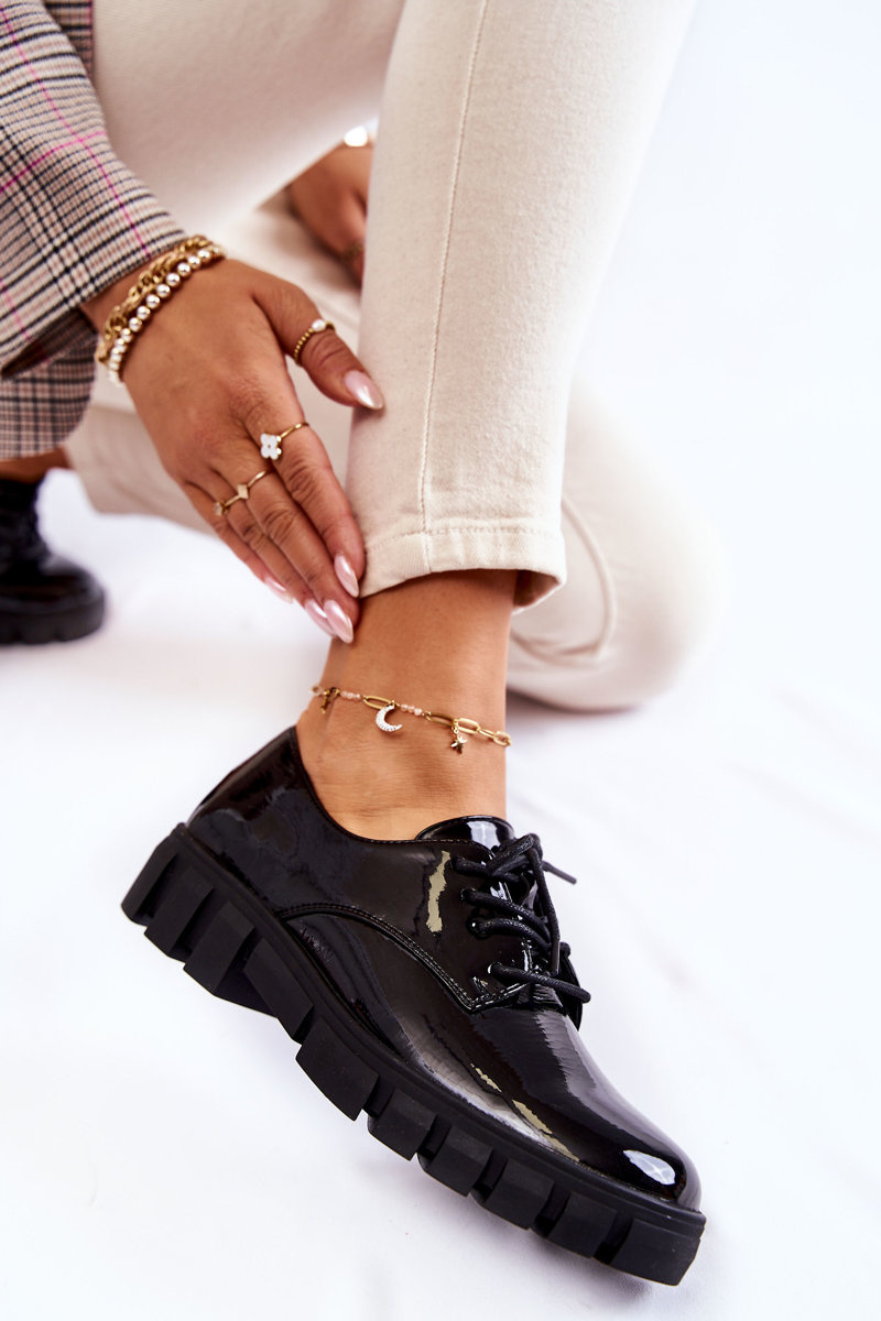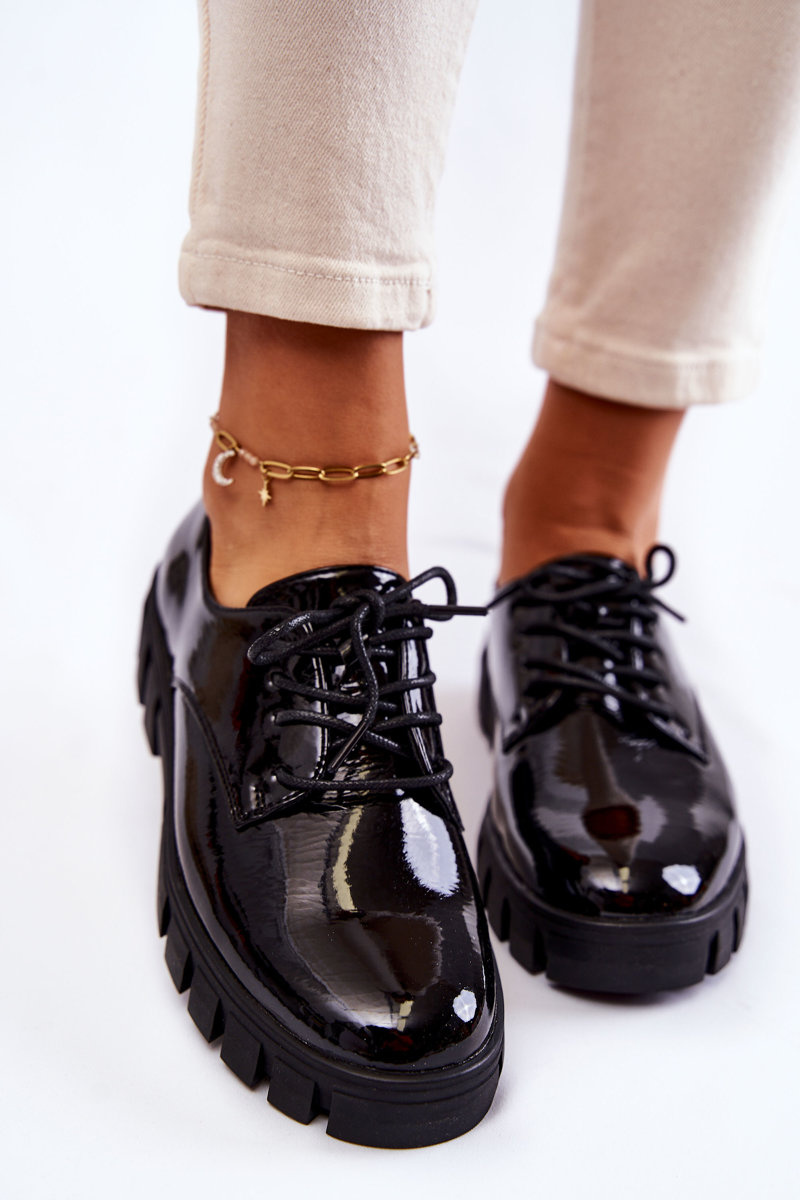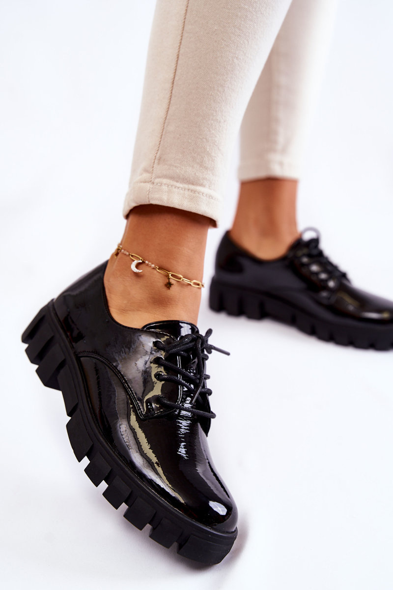 Elegantní dámské boty jsou vyrobeny z eko kůže. Tento model má šněrování. Nasazené na plochém podpatku s platformou a drážkou. Stélka je vyrobena z přírodní kůže. Pata a mírně vyztužená pata zajišťují stabilitu při každém kroku. Tento elegantní model se bude hodit k mnoha stylům! Rozhodně byste ji měli mít ve svém šatníku! Při výběru velikosti použijte tabulku velikostí.