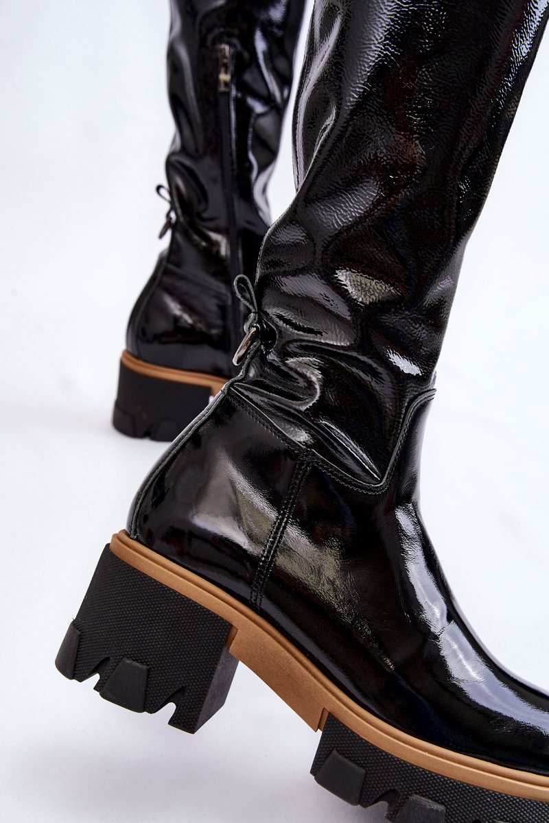 Módní lakované dámské kozačky Černé Venise
