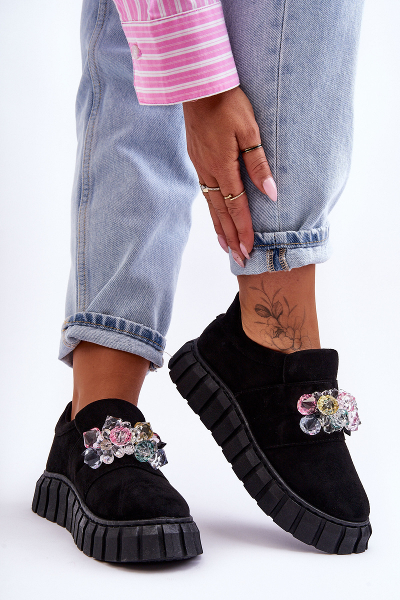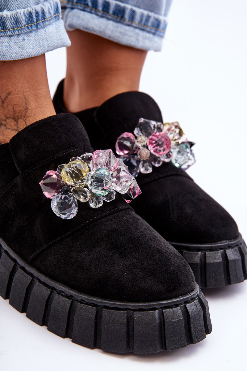 Tyto výjimečné sportovní boty určitě uchvátí vaše srdce! Byla vyrobena z měkké eko semiše. Model je nazouvací a má navíc na přední straně zdobení ve formě krystalů. Boty jsou osazeny na masivní platformě s protiskluzovou podrážkou. Měkká vložka z kombinace pěny a textilního materiálu zajistí pohodlné nošení obuvi. Při výběru velikosti se řiďte tabulkou velikostí.