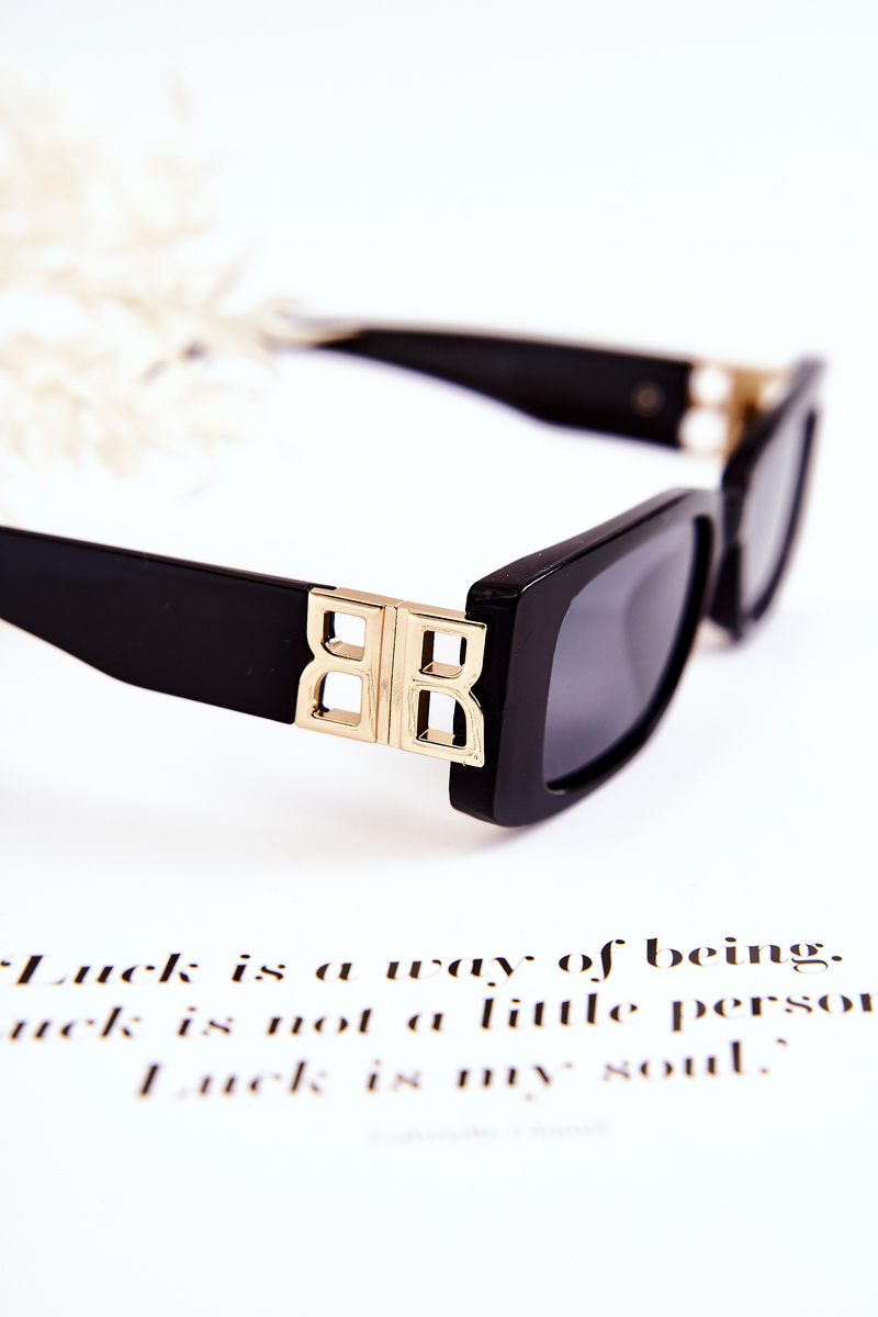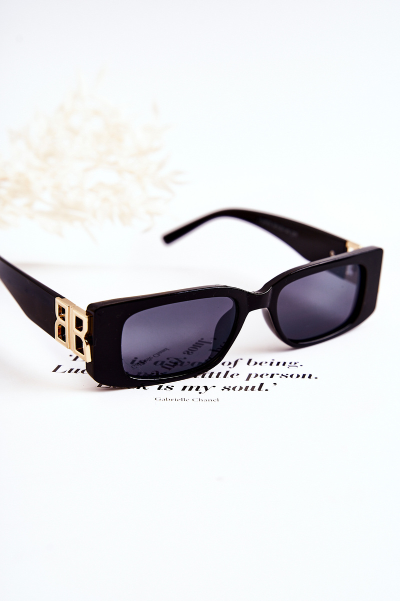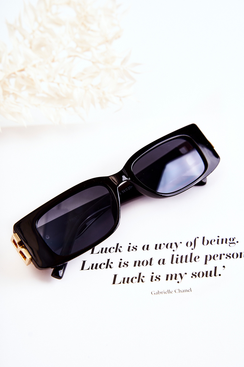 Módní sluneční brýle jsou skvělé pro mnoho situací! Nejen v letní sezóně, ale i v zimní sezóně, kdy se sluneční paprsky odrážejí od sněhu. Obdélníkový model ve stylu 90. let s malými čočkami. Vyrobeno z plastu. Spánky se ke konci zužují a jsou zdobeny zlatým prvkem. Informace výrobce: brýle pohlcují škodlivé UV záření, kategorie 3.
