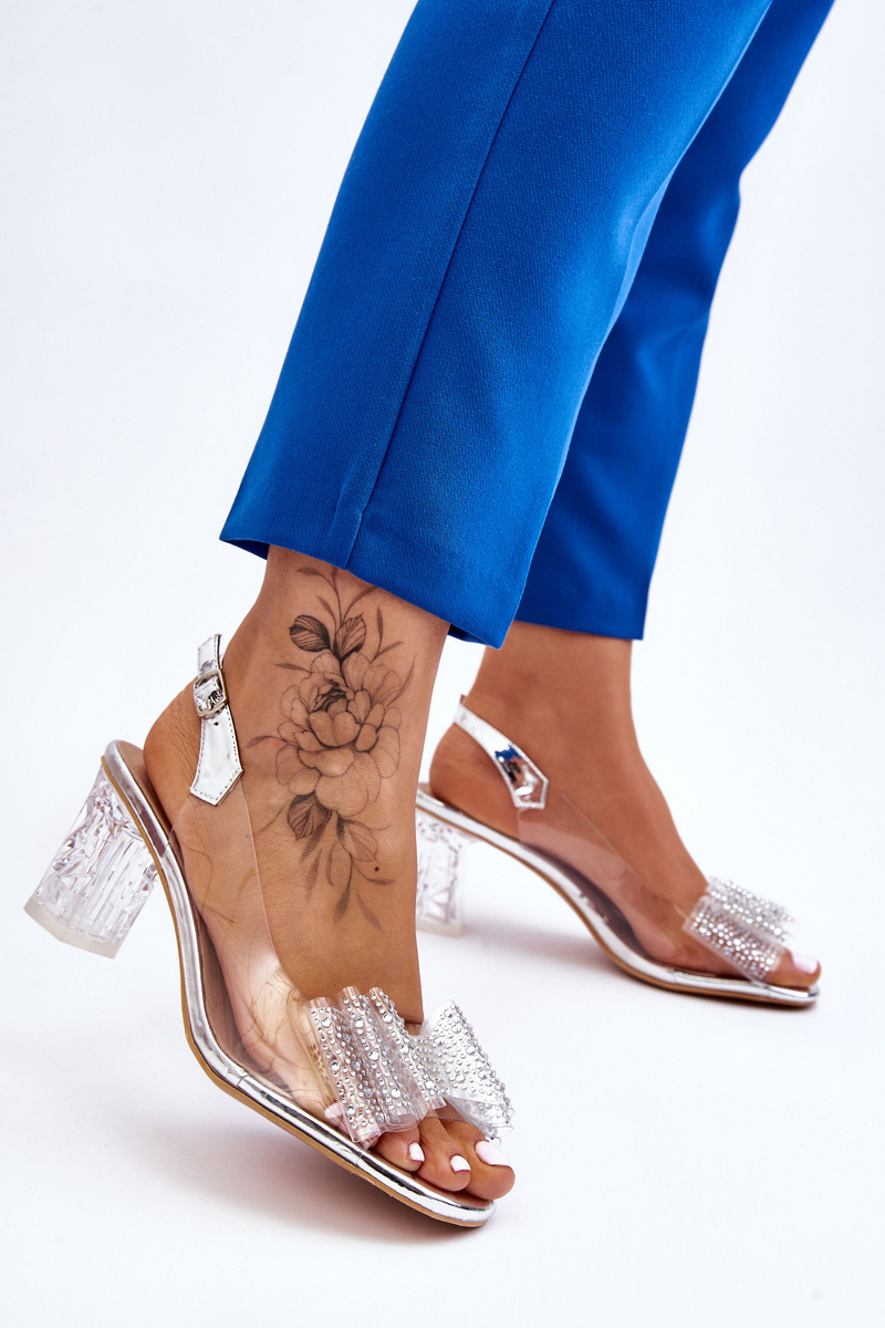 Módní průhledné sandály se mašlí stříbrne Ariella