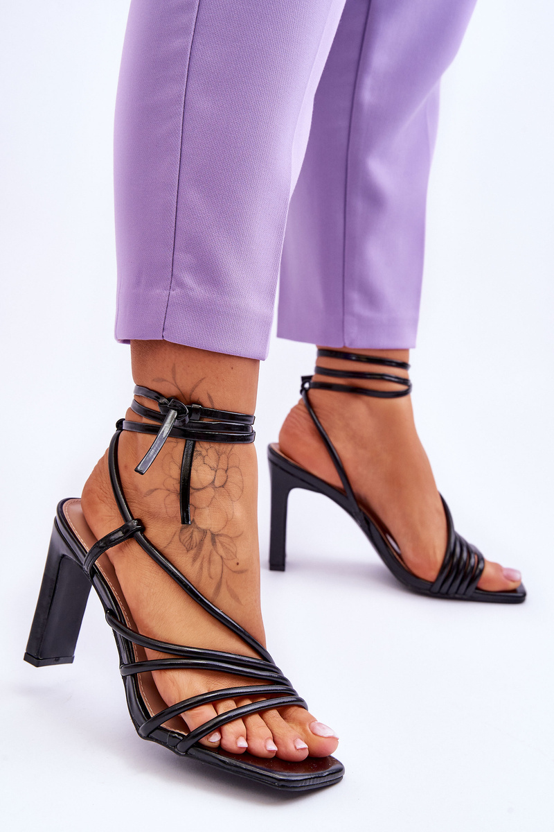 Elegantní dámské sandály jsou vyrobeny z eko kůže. Model má zavazování kolem lýtka. Sandály byly postaveny na plochém podpatku v podobě sloupku. Měkká stélka z eko kůže zajistí pohodlné nošení obuvi. Sandály mají otevřenou hranatou špičku. Tento střih se skvěle hodí k letním šatům nebo elegantním kalhotám. Při výběru velikosti se prosím řiďte tabulkou velikostí.