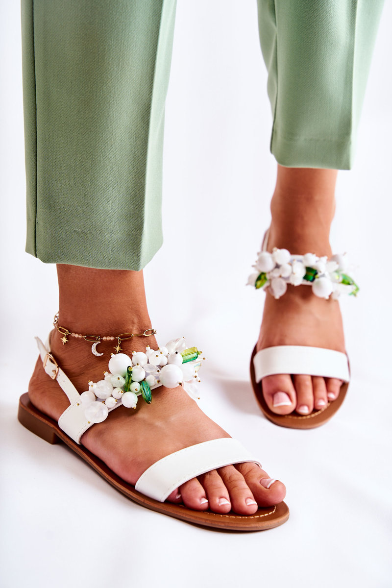 Módní sandály s korálky bíle Hally