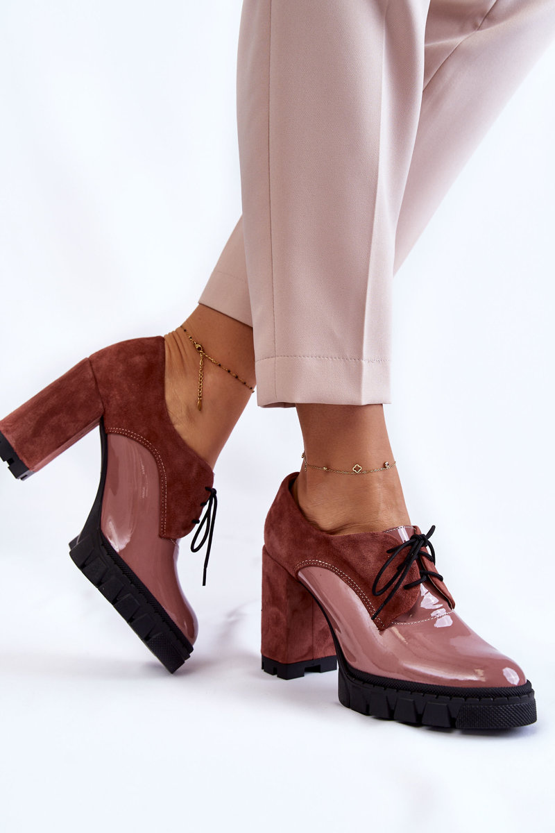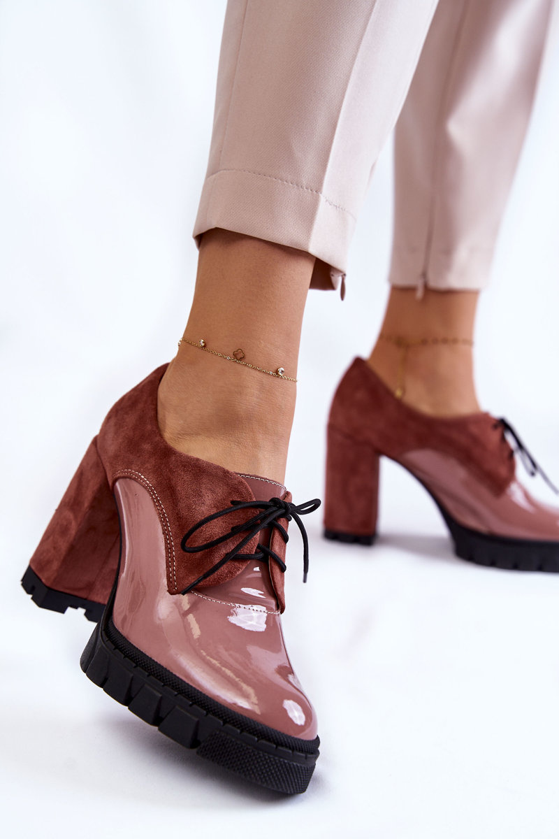 Módní semišové a lakované kozačky na platformě růžové Carisa
