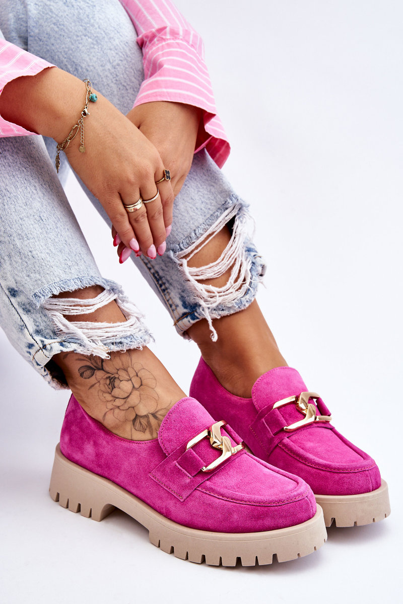 Nazouvací boty z přírodního semiše se zaoblenou špičkou. Jsou upevněny na masivní platformě a plochém stabilním podpatku. Model s vysokým dezénem na podrážce. Nahoře ozdobný řetízek. Pod jazykem je gumička, díky které bude bota více přiléhat k noze. Boty mají pevný podpatek. Módní, pohodlné, vyrobené s důrazem na detail – jedním slovem: perfektní! O vaše pohodlí se postará měkká stélka z přírodní kůže. Při výběru velikosti použijte tabulku velikostí.