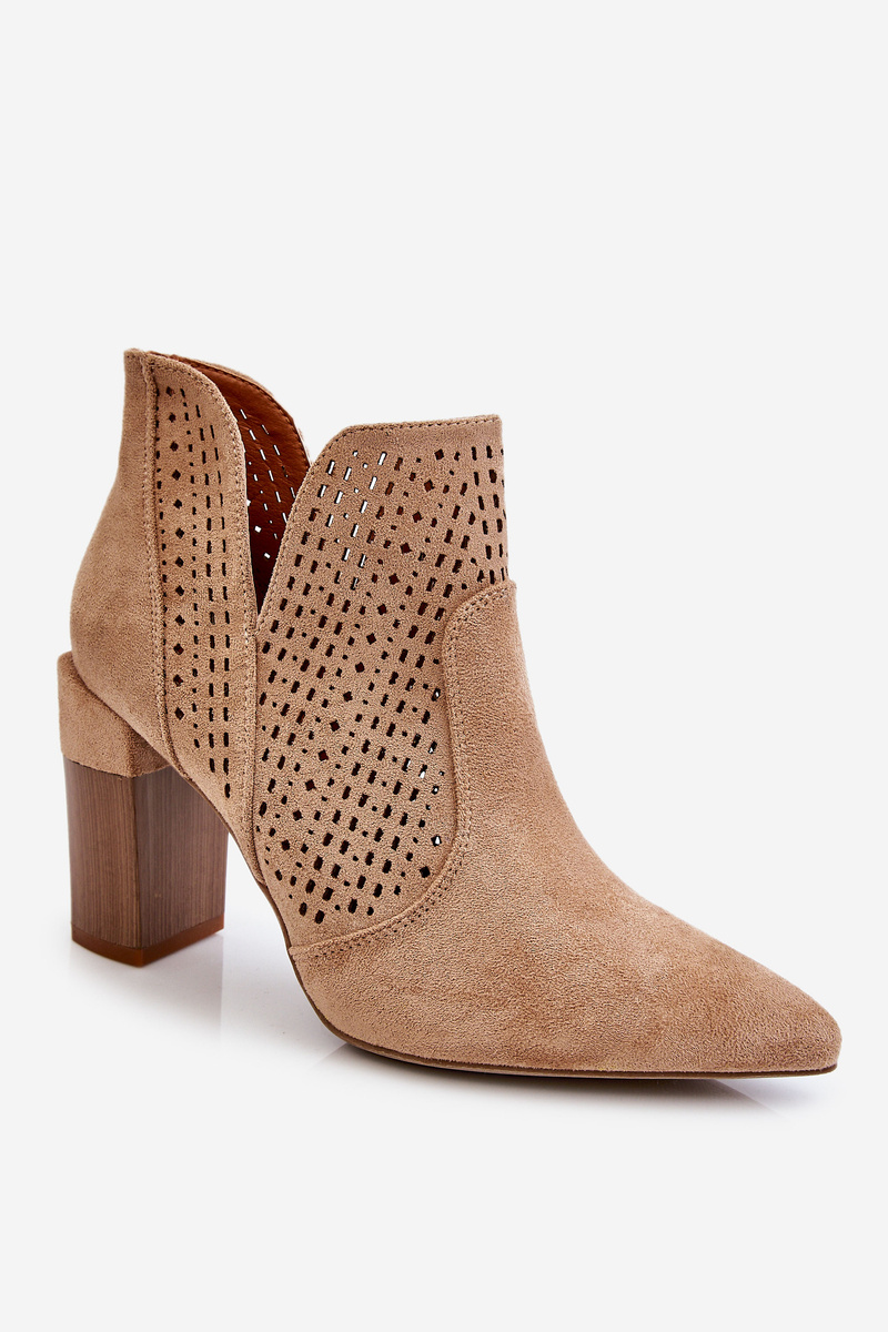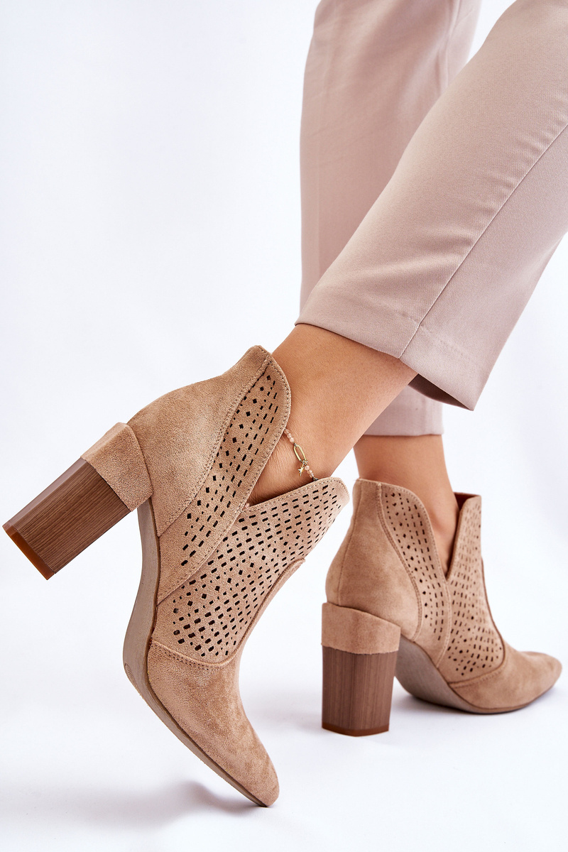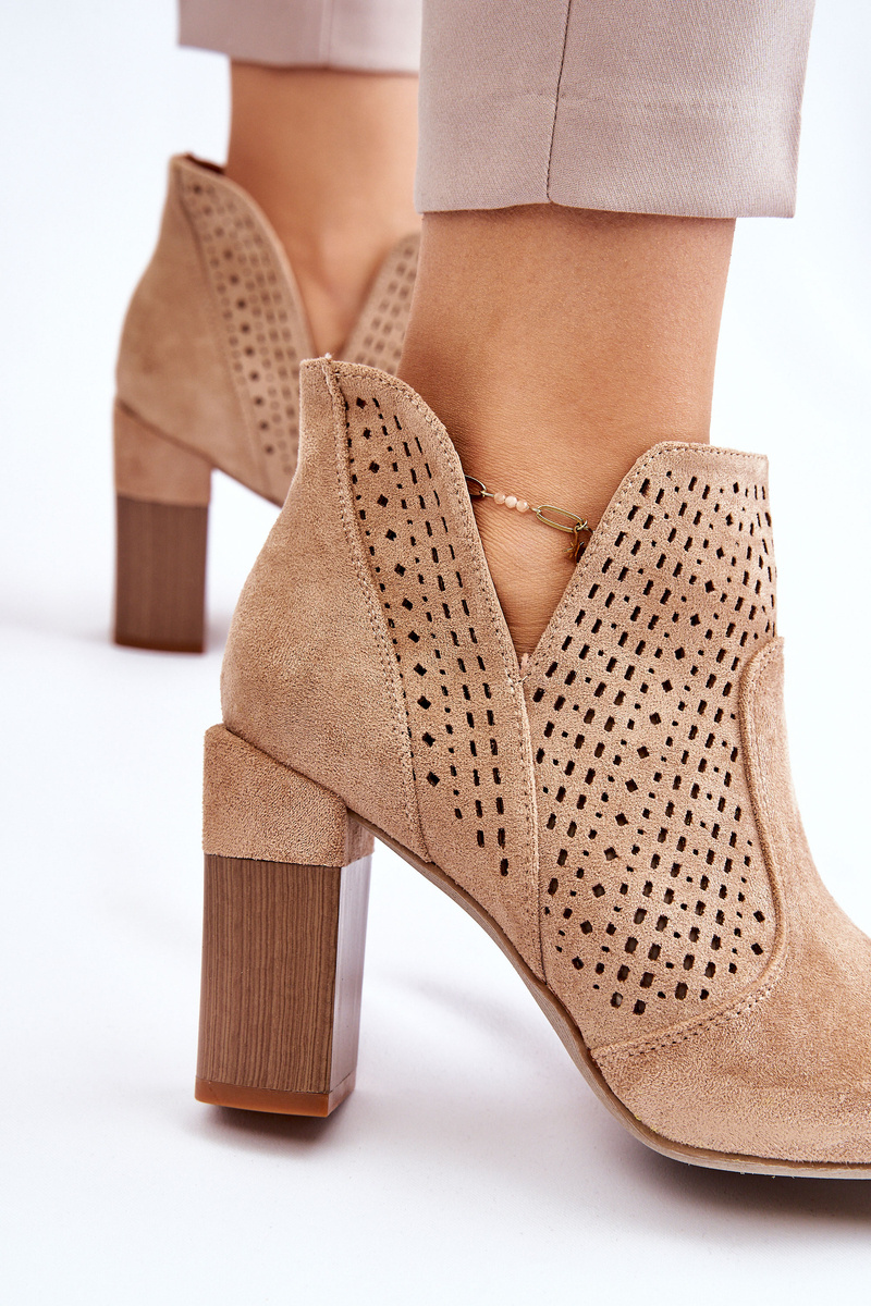 Módní semišové prolamované boty na vysokém podpatku Béžová Genevi