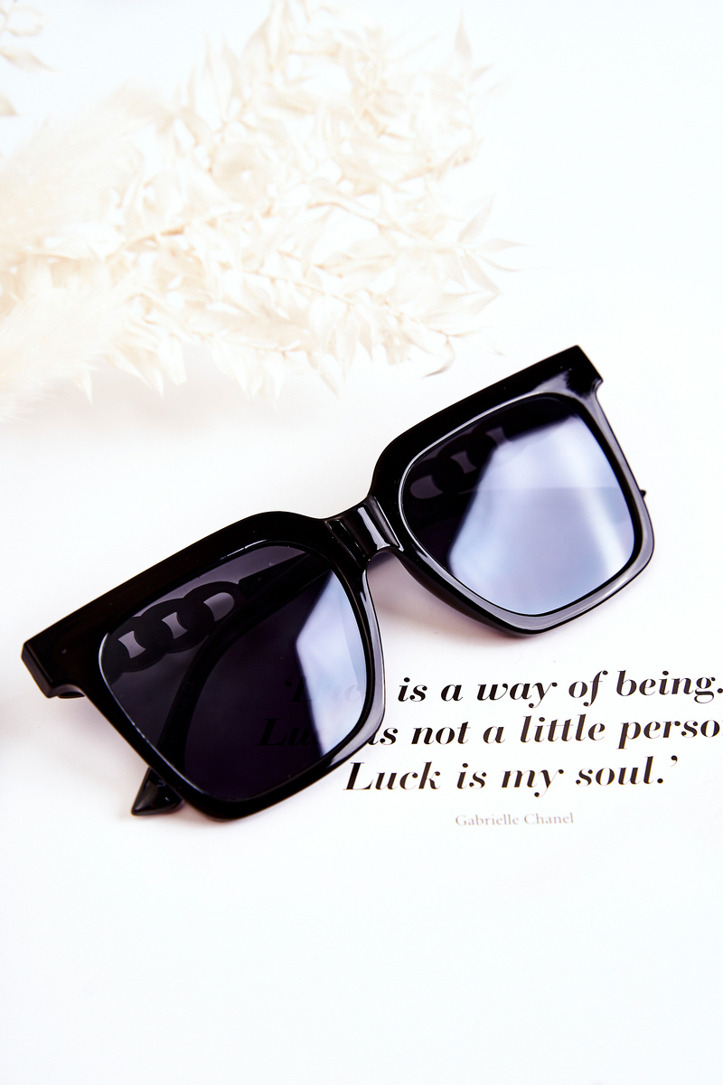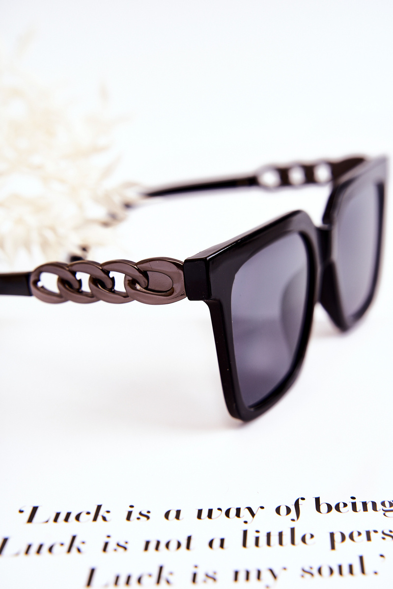 Módní sluneční brýle jsou skvělé pro mnoho situací! Nejen v letní sezóně, ale i v zimní sezóně, kdy se sluneční paprsky odrážejí od sněhu. Čtvercový model. Má tenké rámečky objektivu dole a po stranách a silnější nahoře. Plastový most. Chrámy vyrobené z plastu s ozdobným doplňkem v podobě řetízku. Informace výrobce: brýle pohlcují škodlivé UV záření, kategorie 3.