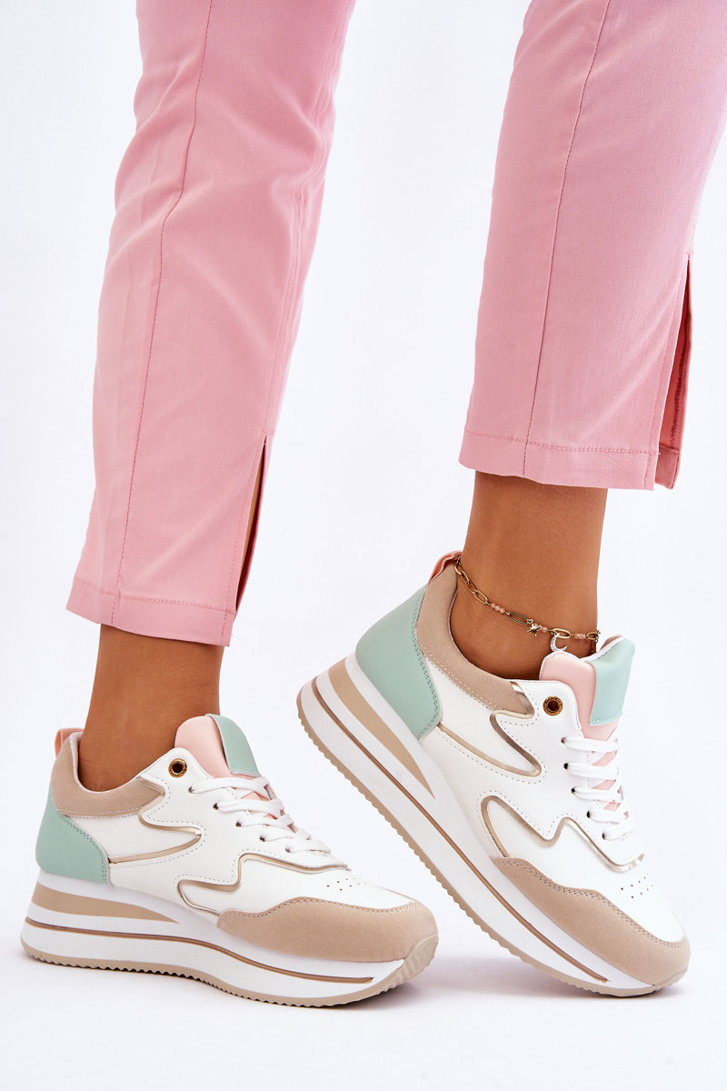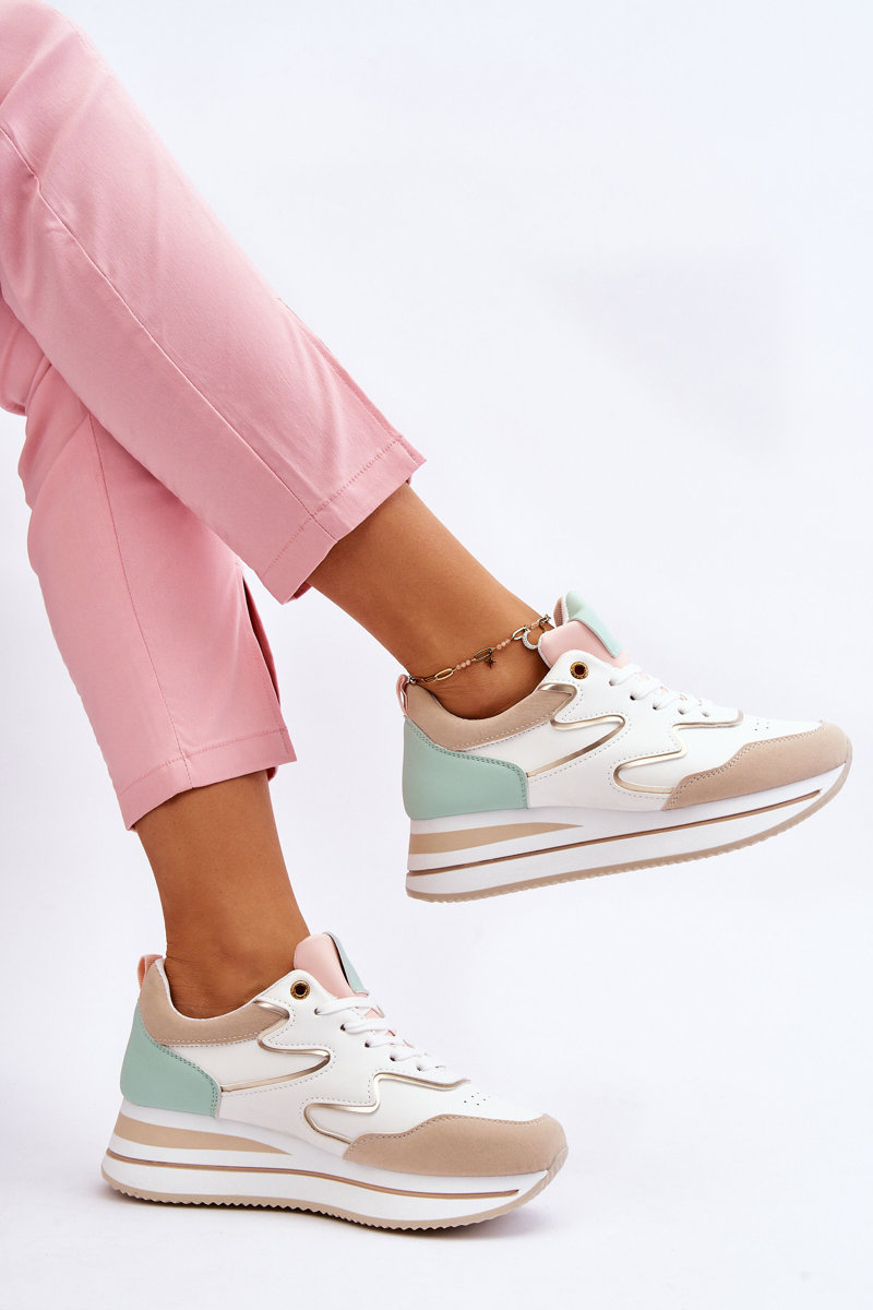 Módní sportovní obuv zajímavého střihu je vyrobena z eko kůže. Na nose mají jemnou perforaci. Nasazené na platformě a jemném klínovém podpatku. Měkká stélka je vyrobena z materiálu. Obuv má klasické šněrování. Při výběru velikosti se řiďte tabulkou velikostí.