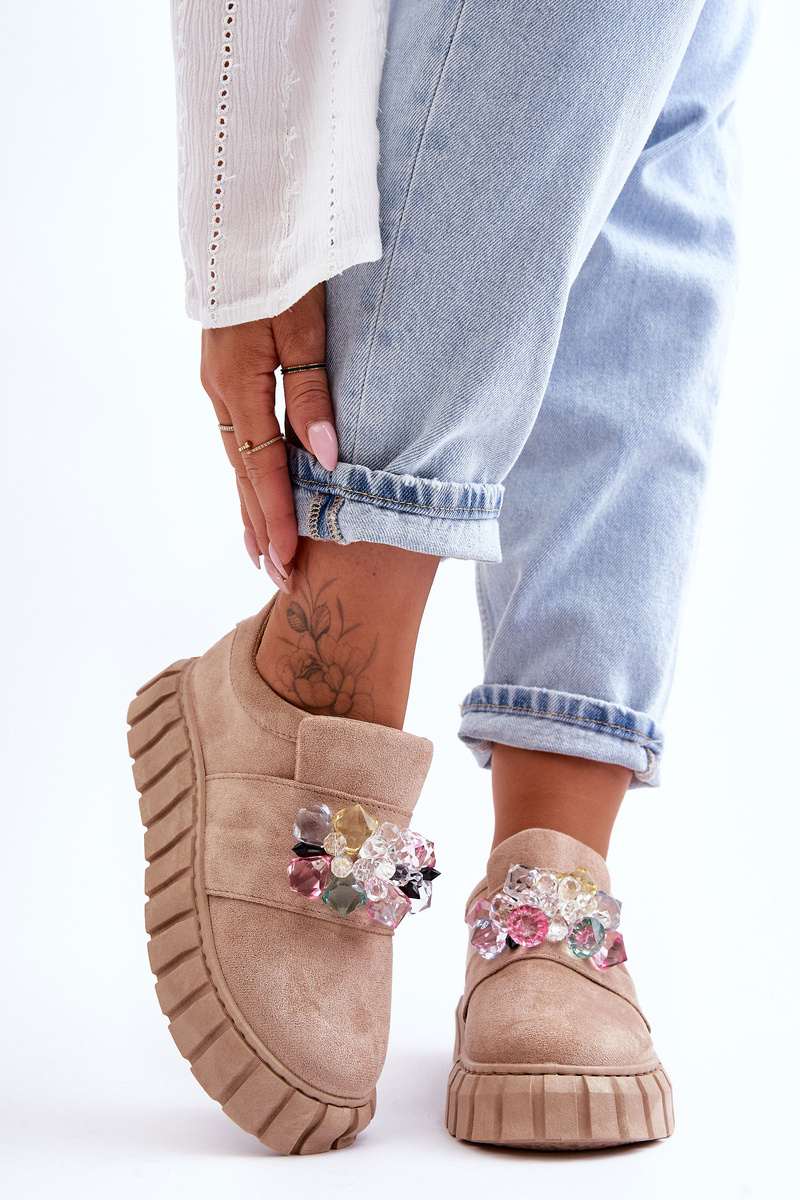 Modní Sportovní Slip-on Boty Polobotky s Ozdobou Tmavě Béžovou Desire