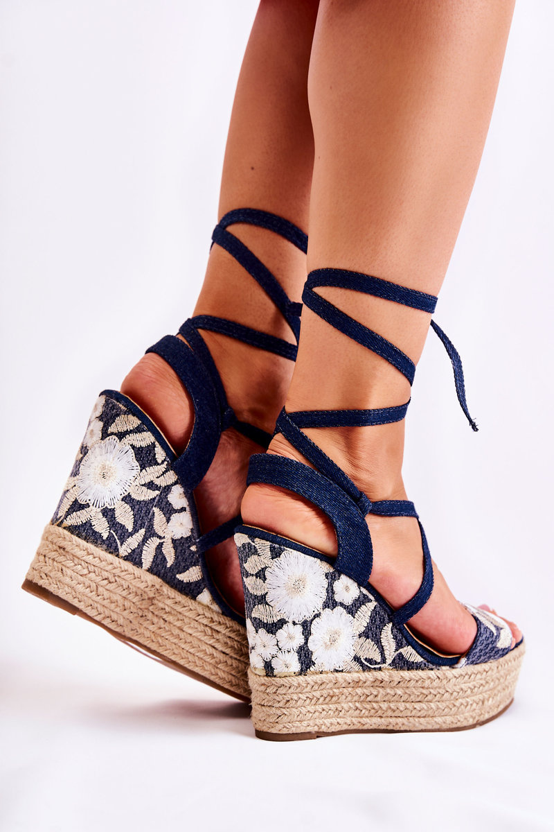 Jedinečné sandály na ozdobném klínovém podpatku s pytlovinou na podrážce. Vyrobeno z textilního materiálu. Lepený model. Pohodlí při používání zajistí stélka z eko kůže. Podešev z pryžový materiál je protiskluzová. Tento nevšední model obohatí váš letní šatník! Tyto sandály se skvěle hodí k vzdušným šatům nebo sukni. Při výběru velikosti použijte tabulku velikostí.