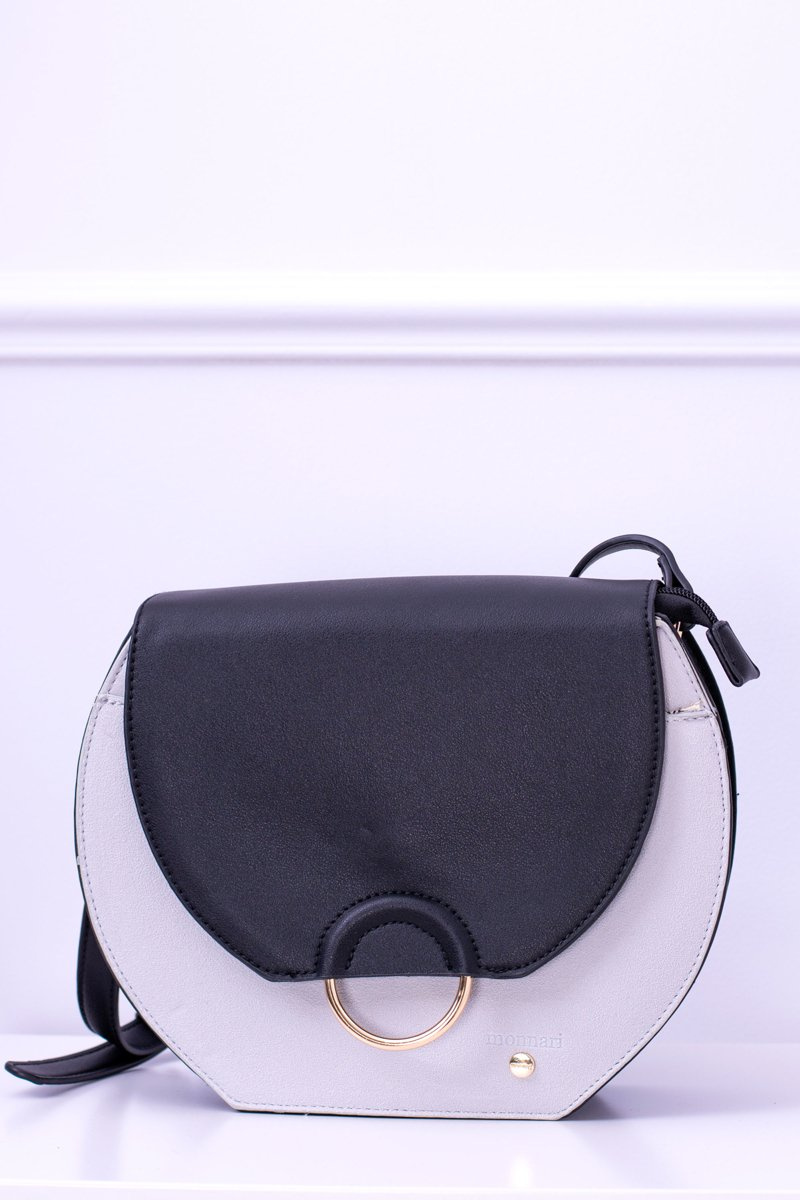 An elegant handbag with colorful sides. Bag hanging on the belt, on the front with a flap and a jewel ring. One-compartment bag covered with a zipper. Interior with a bright lining and small pockets. Back of the bag with an open pocket. The bag is available in several color options. We recommend this model as an addition to the formal style.