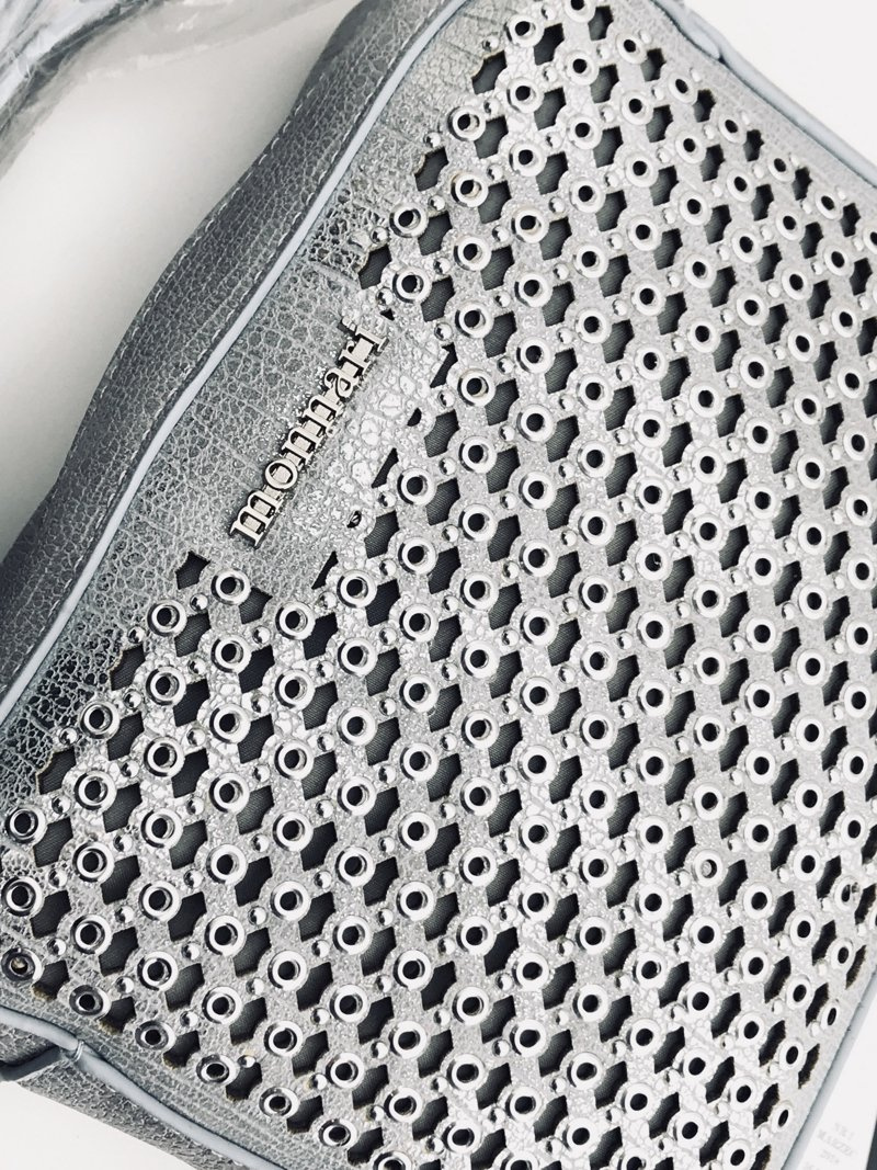 Dámská taška z eko-kůže neobsahující A4. Taška zdobená lesklými nýty a stříbrnou barvou.. Vnitřní část tašky s jasnou podšívkou, zipy. Dlouhý nastavitelný ramenní popruh. Tento model doporučujeme jako doplněk městského stylu. p>