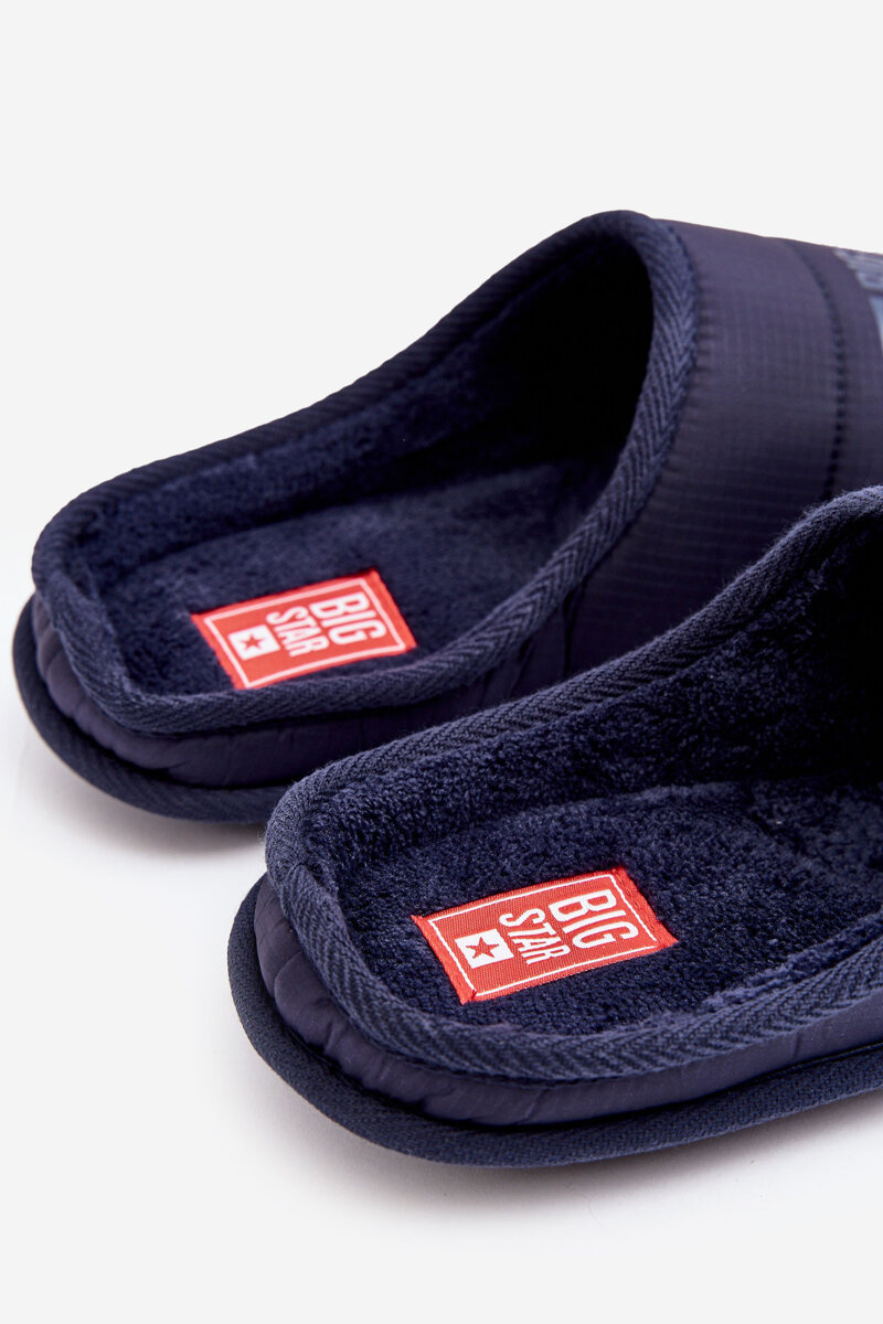 Pánské nazouvací pantofle se širší špičkou zajistí pohodlí při používání. Pantofle z textilního materiálu s prošíváním. Nahoře je logo Big Star. Pantofle byly uvnitř zateplené měkkou dekou. Nasazeno na podrážce z pryžového materiálu, který dokonale izoluje od studené země. Při výběru velikosti použijte tabulku velikostí.