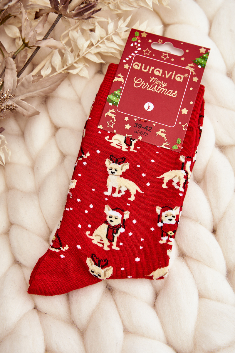 Mužské Vánoční Bavlněné Ponožky S Sobíky Červené
