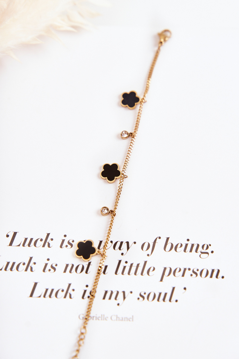 Nádherný náramek na tenkém řetízku je vyroben z nerezové oceli. Je délkově nastavitelná. Náramek má ozdobné prvky v podobě květin a kubických zirkonů. Tento model je také skvělým doplňkem každodenního stylingu. Rozhodně byste to měli mít!