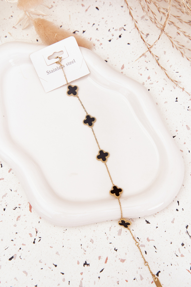 Náramek s přívěsky nerezová ocel zlatá-černá