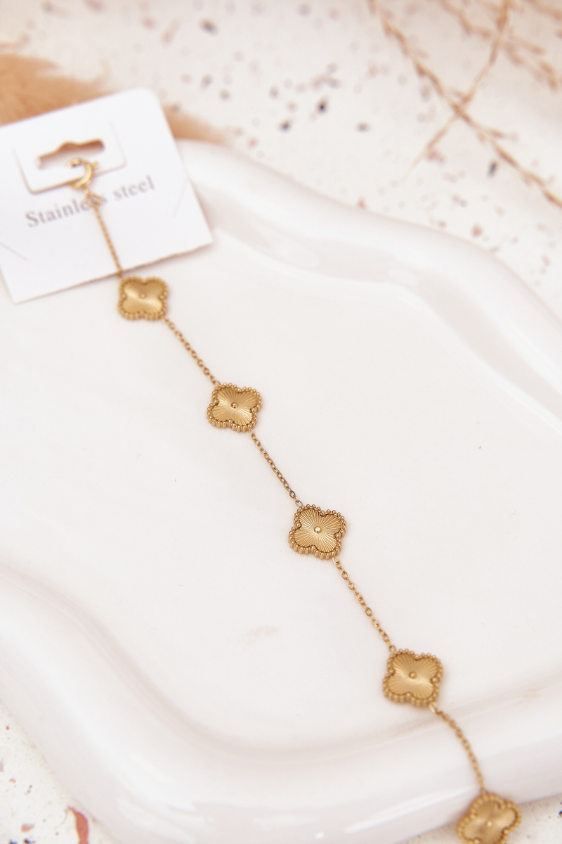 Ženská náramok vyrobený z nerezovej ocele je jemný a ženský doplnok, ktorý pridá šarm každej štýlizácii. Prívesky v podobe kvetov dodávajú jemnosť. Vďaka nastaviteľnej dĺžke sa dá dokonale prispôsobiť obvodu ruky. Pevný materiál zaručuje odolnosť voči škrabancom a dlhý lesk. Ideálny na každý deň aj na výnimočné príležitosti.