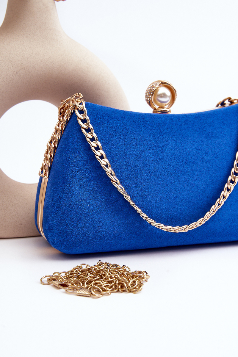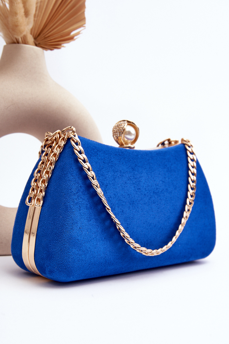 Mała torebka wizytowa wykonana z eko zamszu. Idealna do wieczorowych i koktajlowych stylizacji! Zapinana na ozdobny zatrzask. Model ten posiada dodatkowy łańcuszek.