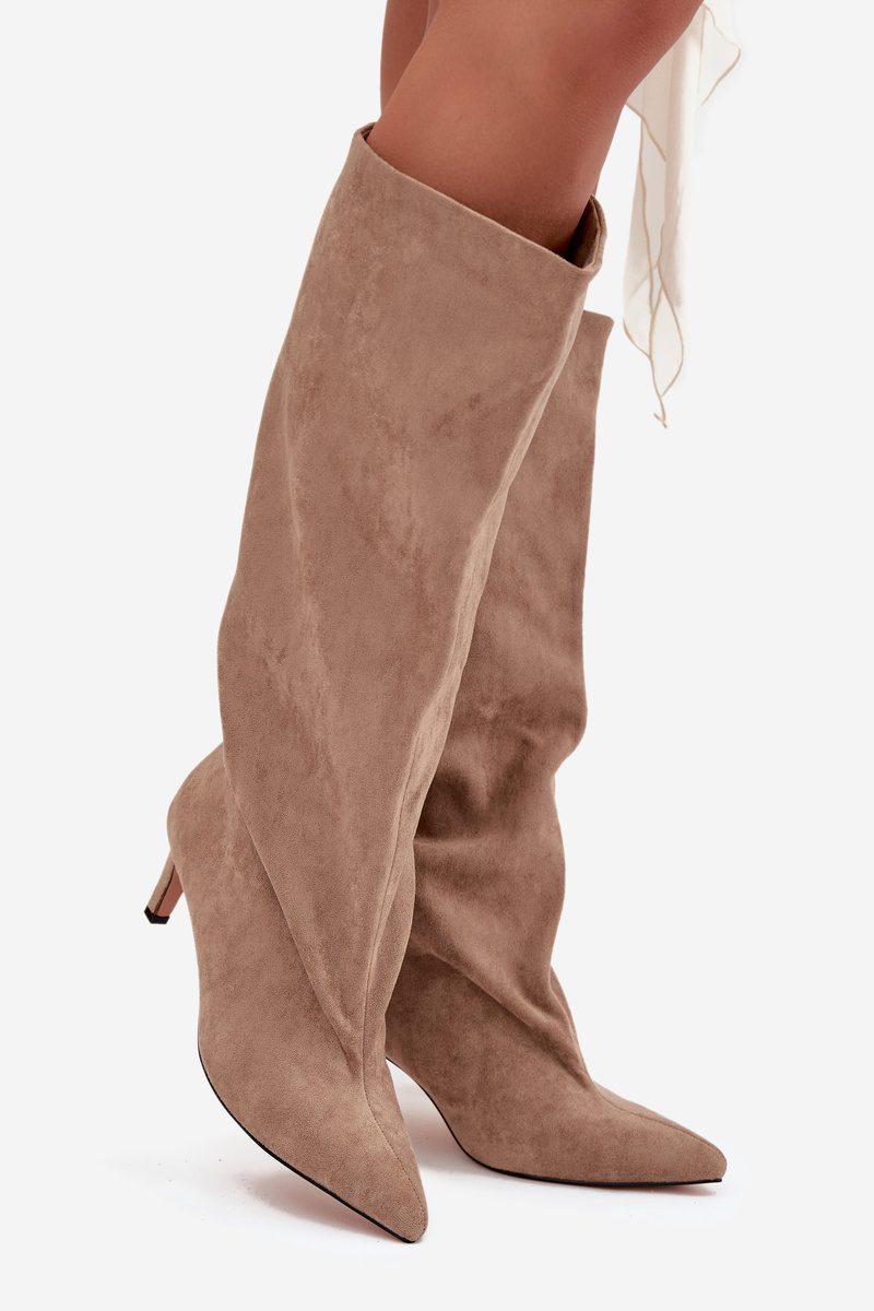Nazouvací dámské kozačky na jehlovém podpatku béžové Taffine