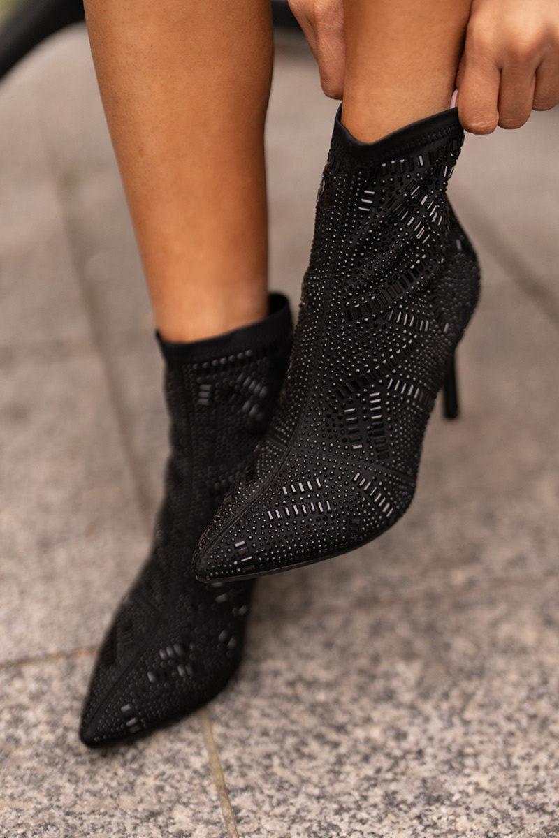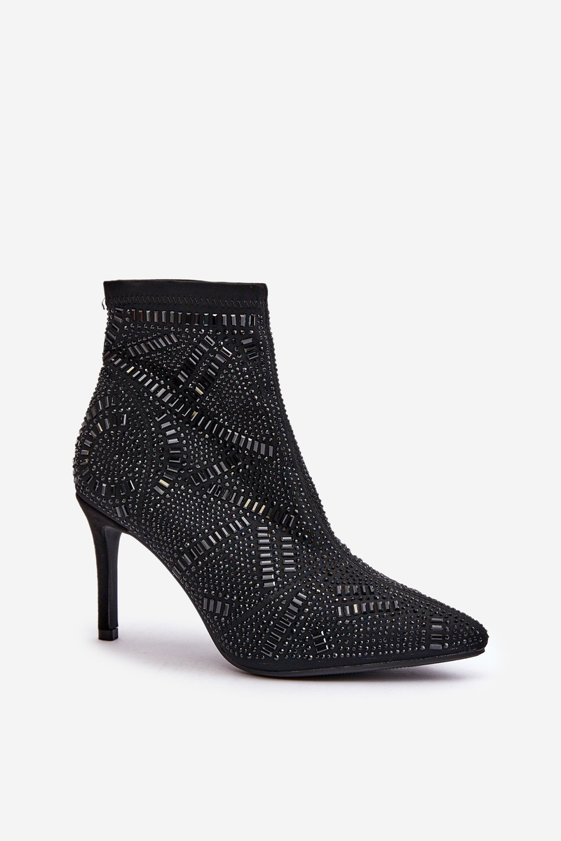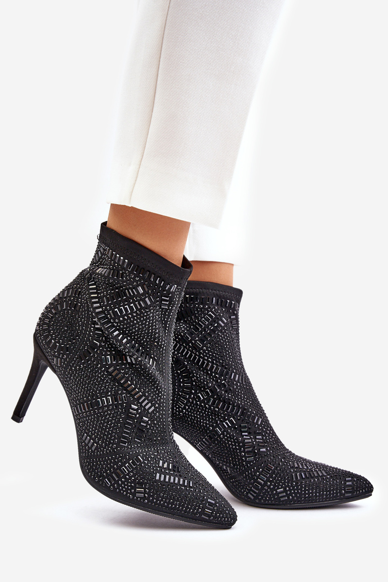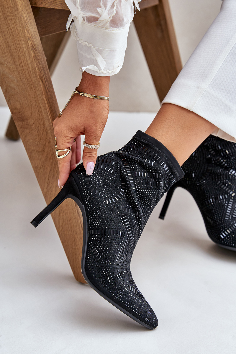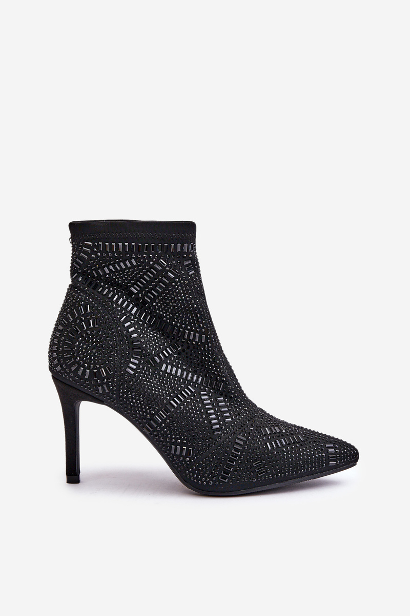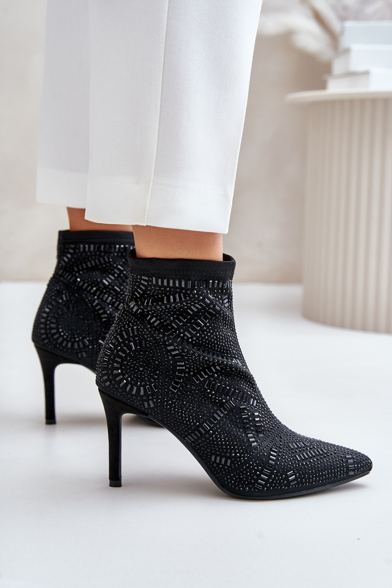 Nazouvací zdobené botky na jehlovém podpatku S.Barski HY42-161 Černé