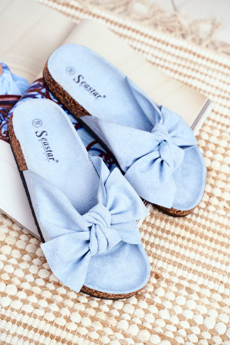 Krásné pantofle na korkové podrážce. Boty mají profilovanou stélku, která zaručuje maximální pohodlí. Svršek je vyroben z měkkého eko semiše, příjemného na dotek. Plastová podrážka. Krásná mašlička na přední straně. Žabky se budou skvěle hodit do každodenní práce nebo na nákupy, ale i na doma místo přezůvek. Ideální na léto! Pantofle jsou dostupné v mnoha krásných barvách! Při výběru velikosti použijte tabulku velikostí.