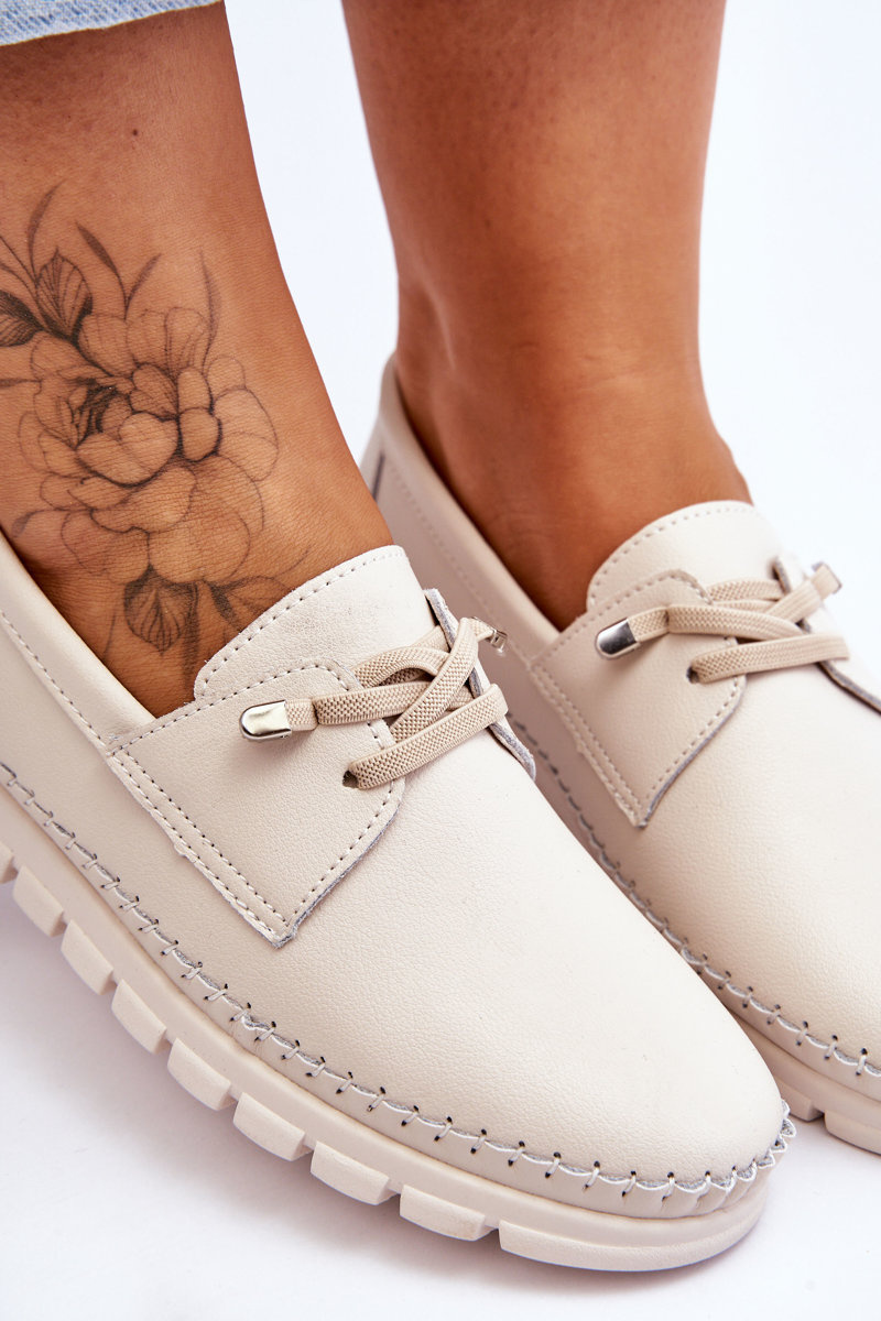 Dámské boty jsou vyrobeny z přírodní kůže. Tento model má gumičky imitující tkaničky. Postaveno na drážkované platformě. Stélka je vyrobena z přírodní kůže. Zajímavý střih těchto bot bude fungovat v mnoha stylech! Tento model by neměl chybět ve vašem šatníku! Při výběru velikosti se řiďte tabulkou velikostí.