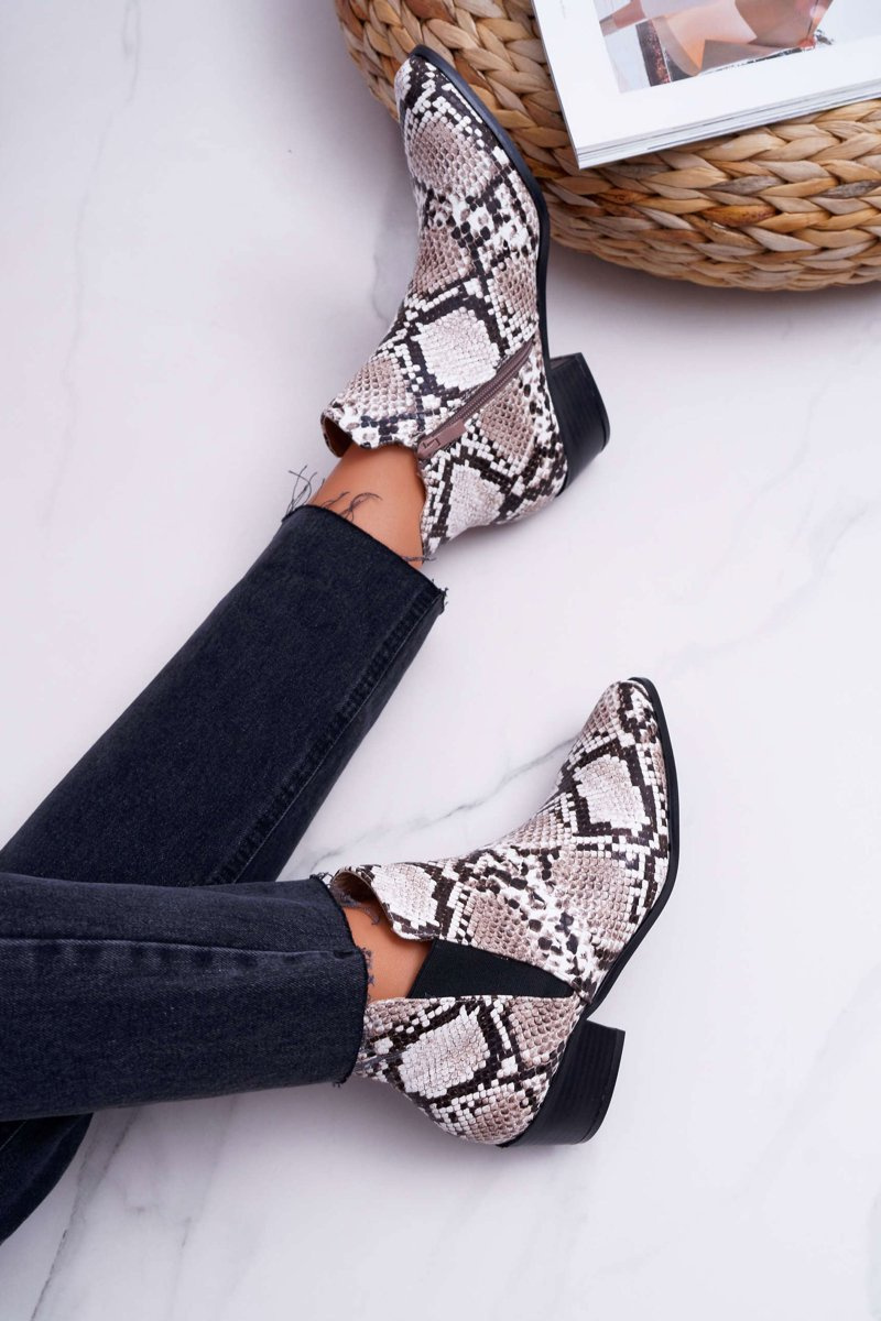 Hadí botky jsou krásné. Barva je spíš hnědo-bílá s béžovou, než černo bílá. Tak, jako na obrázku.;-) Velikost taky sedí. Jsou trošku užší, ale už během prvního nošení se krásně přizpůsobily noze.