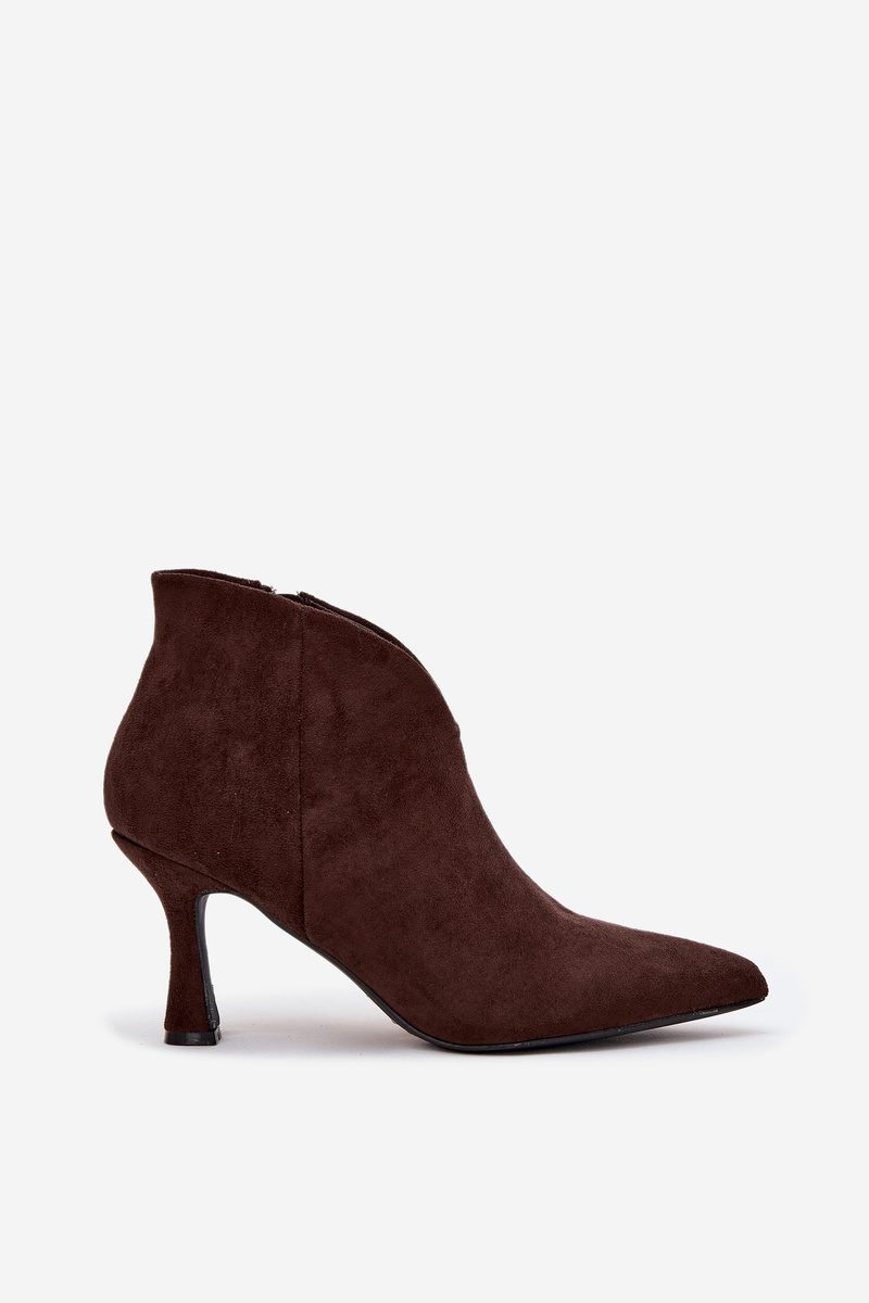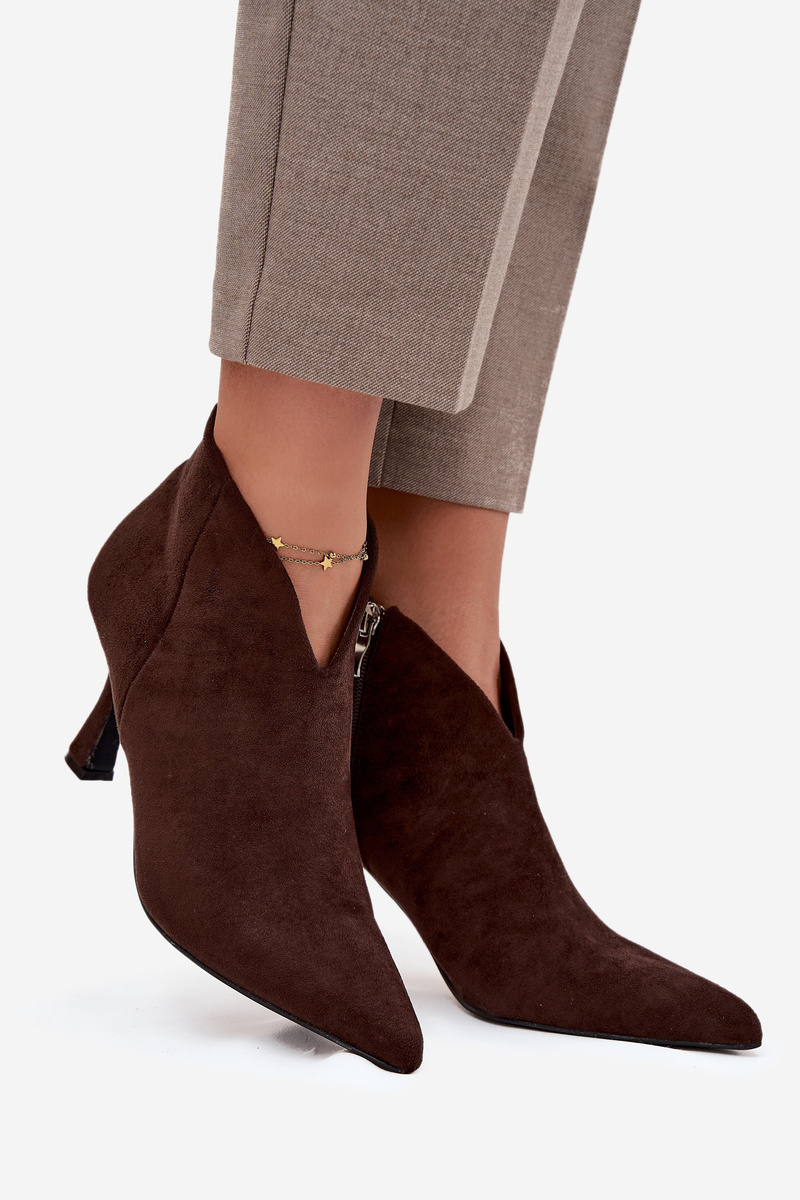 Nízké dámské kotníkové boty na jehlovém podpatku ekologická semišová čokoládové Jolivra