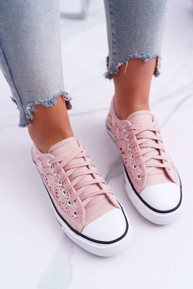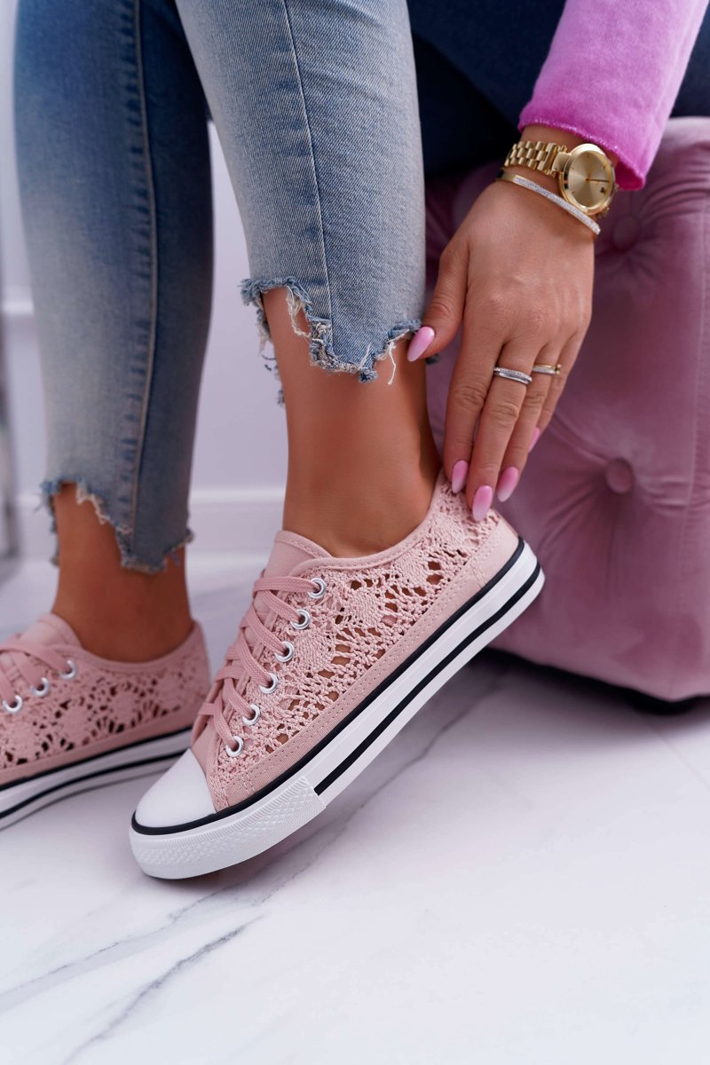 Nízké Dámské Tenisky Krajka Růžové Veroli