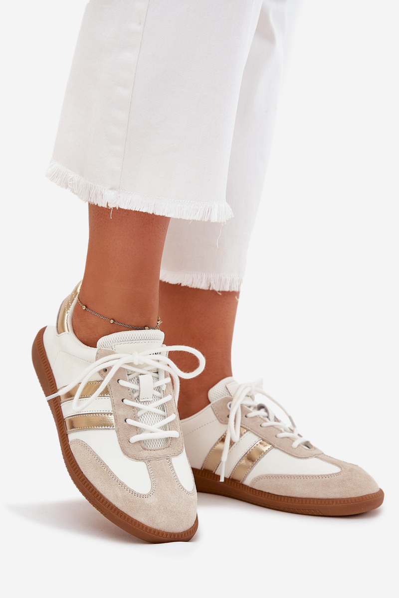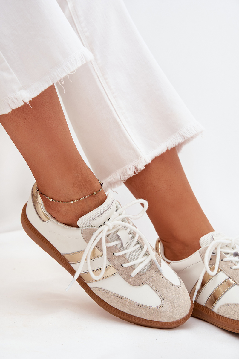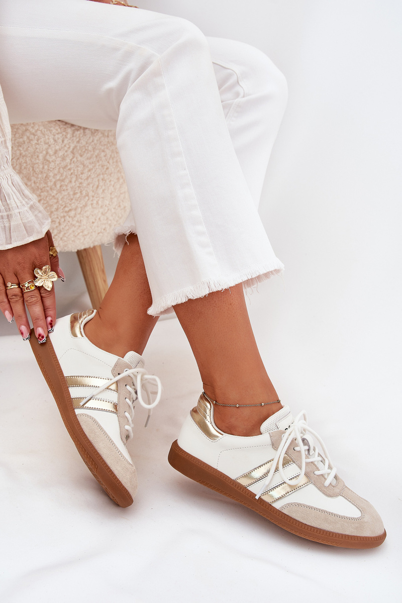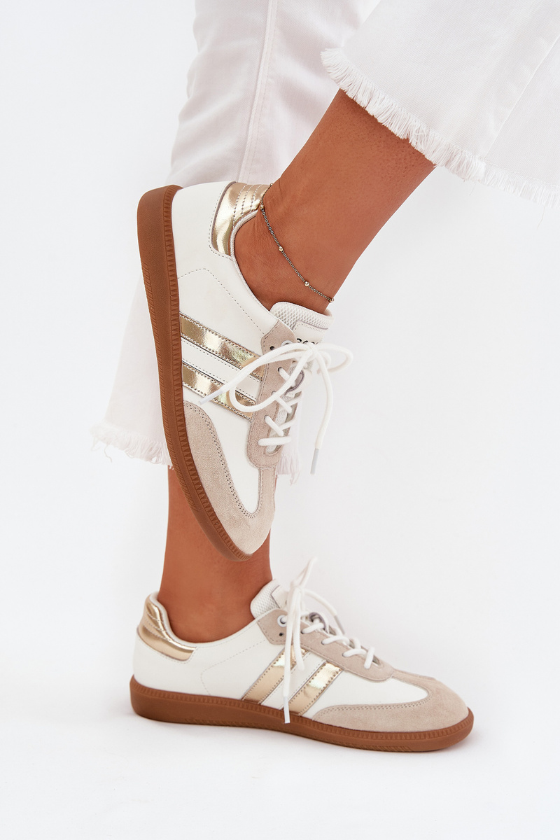 Nízké kožené sneakersy dámské bílo-zlaté Ismina