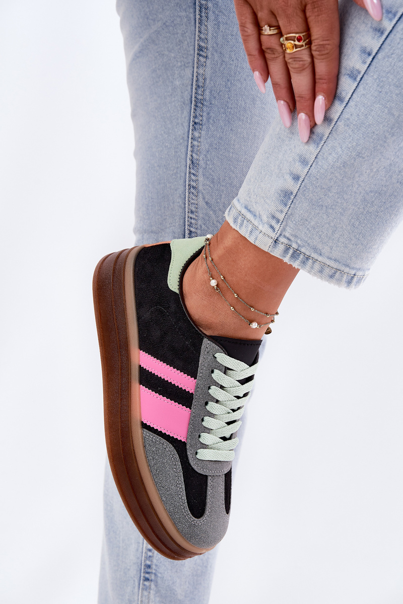 Stylové tenisky, kombinace textilního materiálu a eko kůže, jsou skvělou volbou na každodenní nošení. Umístěné na platformě, přidávají výšku, zatímco zajišťují pohodlí po celý den. Model má vyjímatelnou stélku z pěny, která zaručuje vynikající tlumení a snadnou údržbu hygieny. Tyto tenisky jsou ideální možností pro ty, kteří hledají spojení nejnovějších trendů s funkčností, skvěle se hodí do každodenních stylizací. Při výběru velikosti se řiďte tabulkou velikostí.