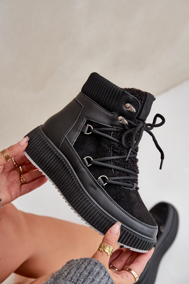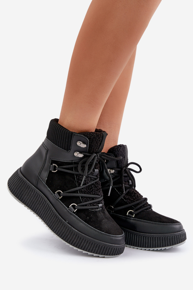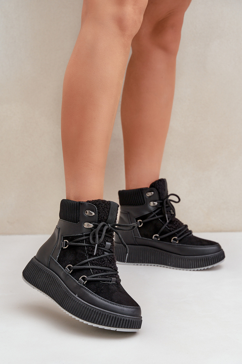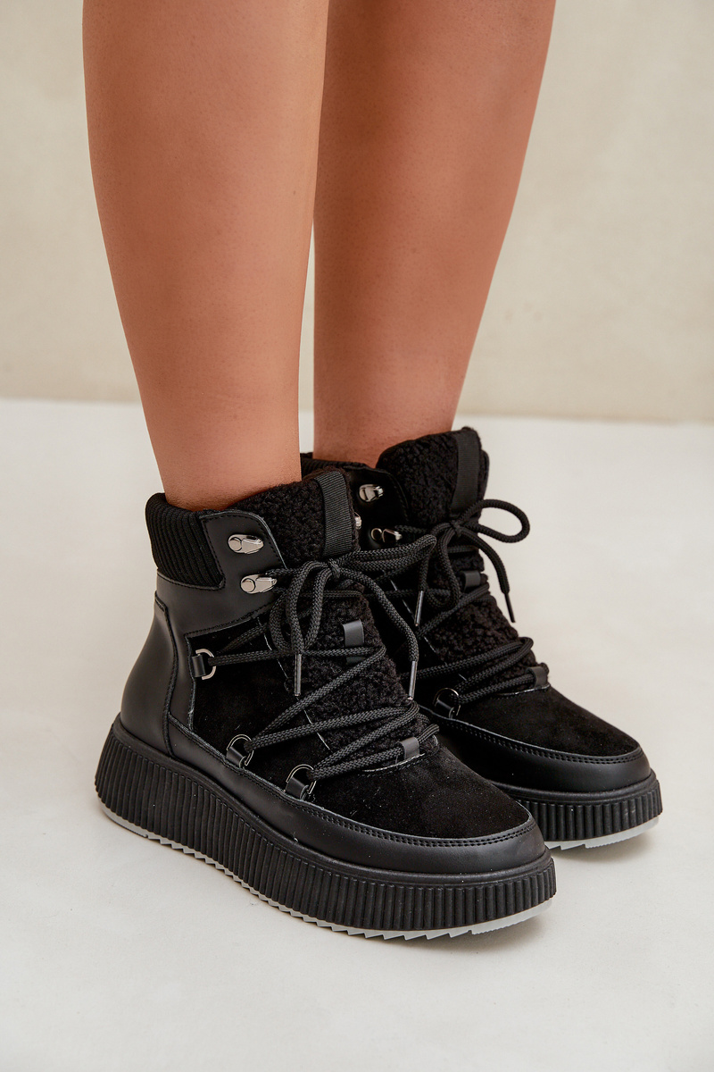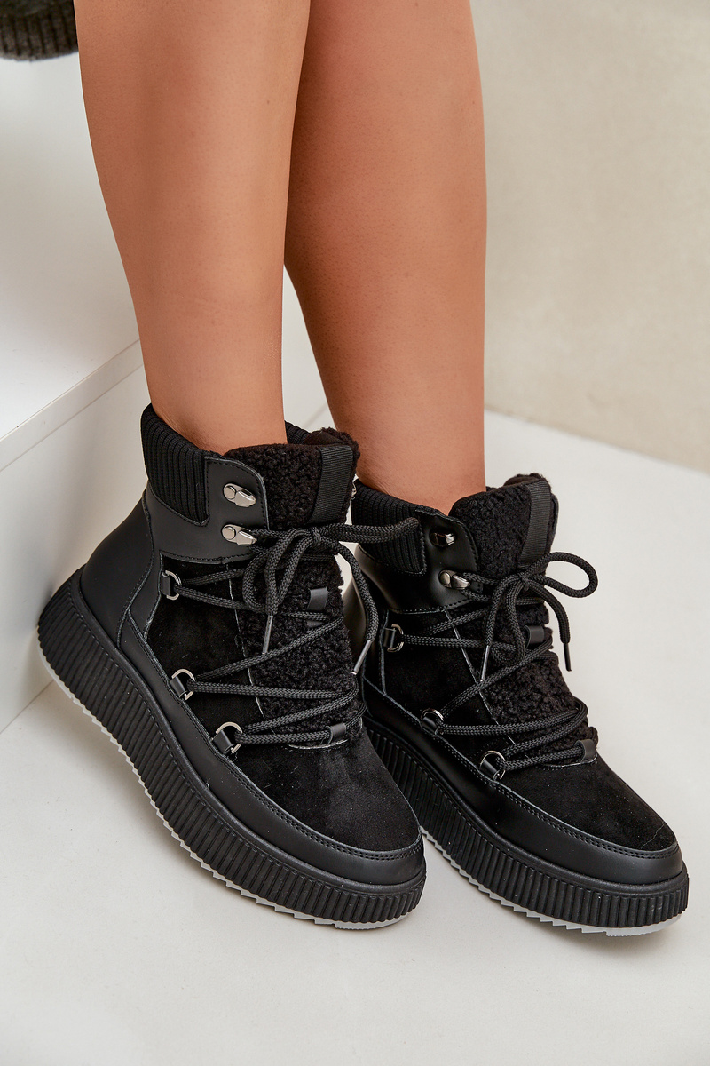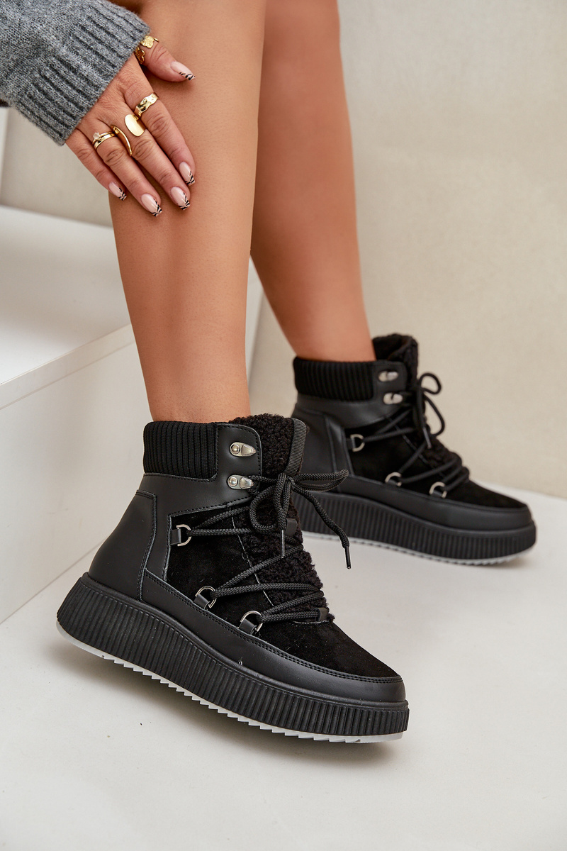 Nízké sněhule na platformě jsou ideální obuví na zimní dny. Model se vyznačuje jazykem zdobeným měkkým ovčím kožíškem, který mu dodává útulný a stylový vzhled. Uvnitř je zateplený obuvnickou dekou. Šněrování s dalšími háčky umožňuje přesné přizpůsobení boty noze. Funkční, módní a pohodlné – dokonalé na zimní procházky a každodenní stylizace. Při výběru velikosti se řiďte tabulkou velikostí.
