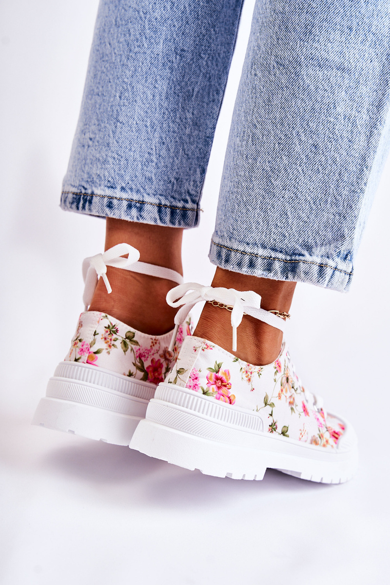 Nízké Tenisky Vázané S Květy Bíle Amissa