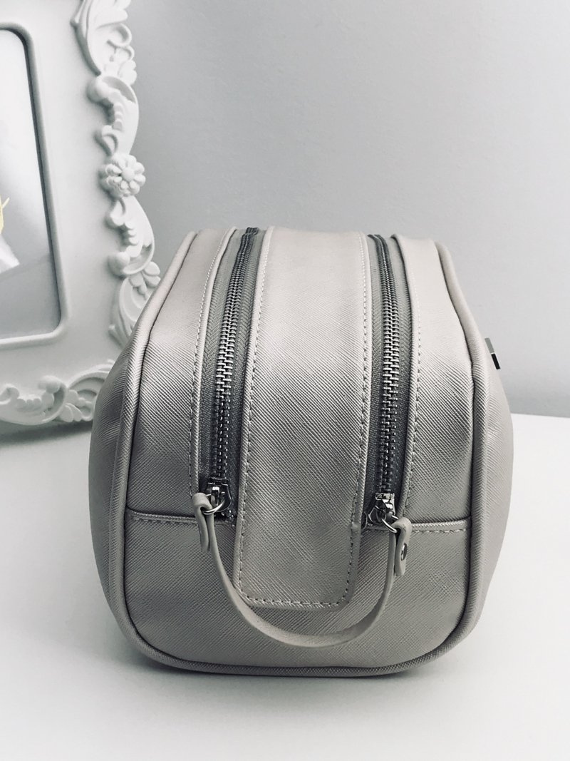 Dámská kosmetická taška vyrobená z ekologické kůže, která může být také sáček. Malé tašky, jako jsou sáčky nebo kosmetičky, jsou hit v nadcházející sezóně! Dekorované stříbrnými třpytivými kování. Vnitřní část tašky s jasnou podšívkou, upevněná dvěma jezdci a magnetem, takže máme pohodlný přístup k obsahu. Tento model doporučujeme jako doplněk městských stylizací a jako nutnost pro každou ženu. p>