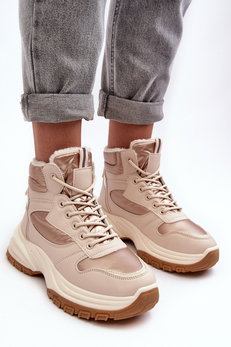 Ocieplane Dámské Sportovní Šněrovací Boty Bežové Dejana