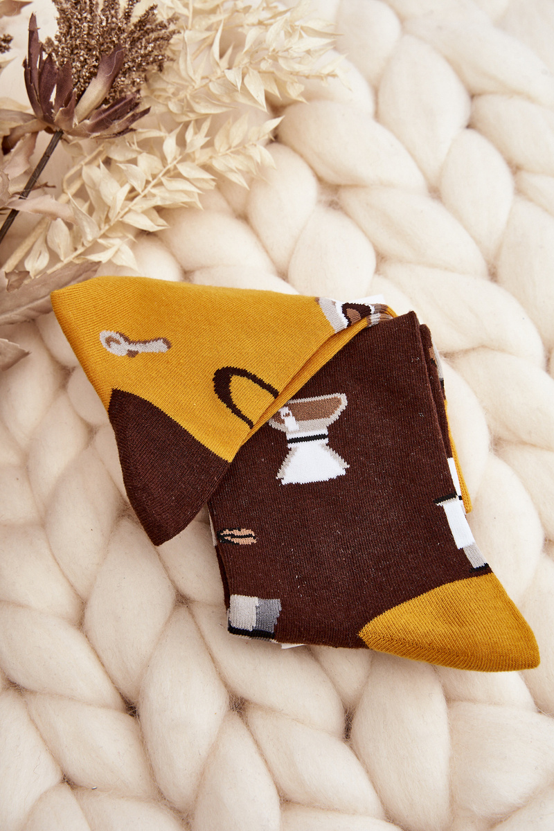 Pánské ponožky Bez páru Káva Hnědá-Žlutá