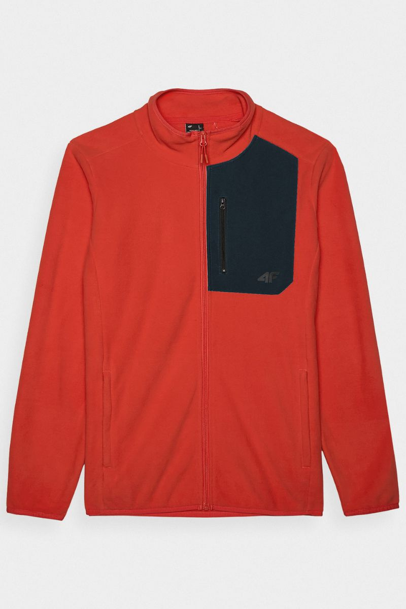 Teplá pánská mikina je vyrobena z kombinace měkkého fleecu a syntetických materiálů. Fleece se vyznačuje velmi dobrou tepelnou izolací, navíc má hydrofobní vlastnosti a rychle schne. Syntetický materiál na náprsní kapse zajišťuje trvanlivost a je snadný na údržbu. Technologie 4F Warm podporuje tepelný komfort. Detaily, které mají význam: límec chránící krk, praktické kapsy. Teplá pánská mikina má límec, který chrání krk. Manžety jsou zakončeny elastickým lemem. Na bocích jsou 2 kapsy na zip. Na hrudi je malá kapsa na zip. Hlavní zip je jednosměrný. Hlavní materiál: 100% polyester Hlavní materiál 2: 100% polyester Podšívka: 100% polyester