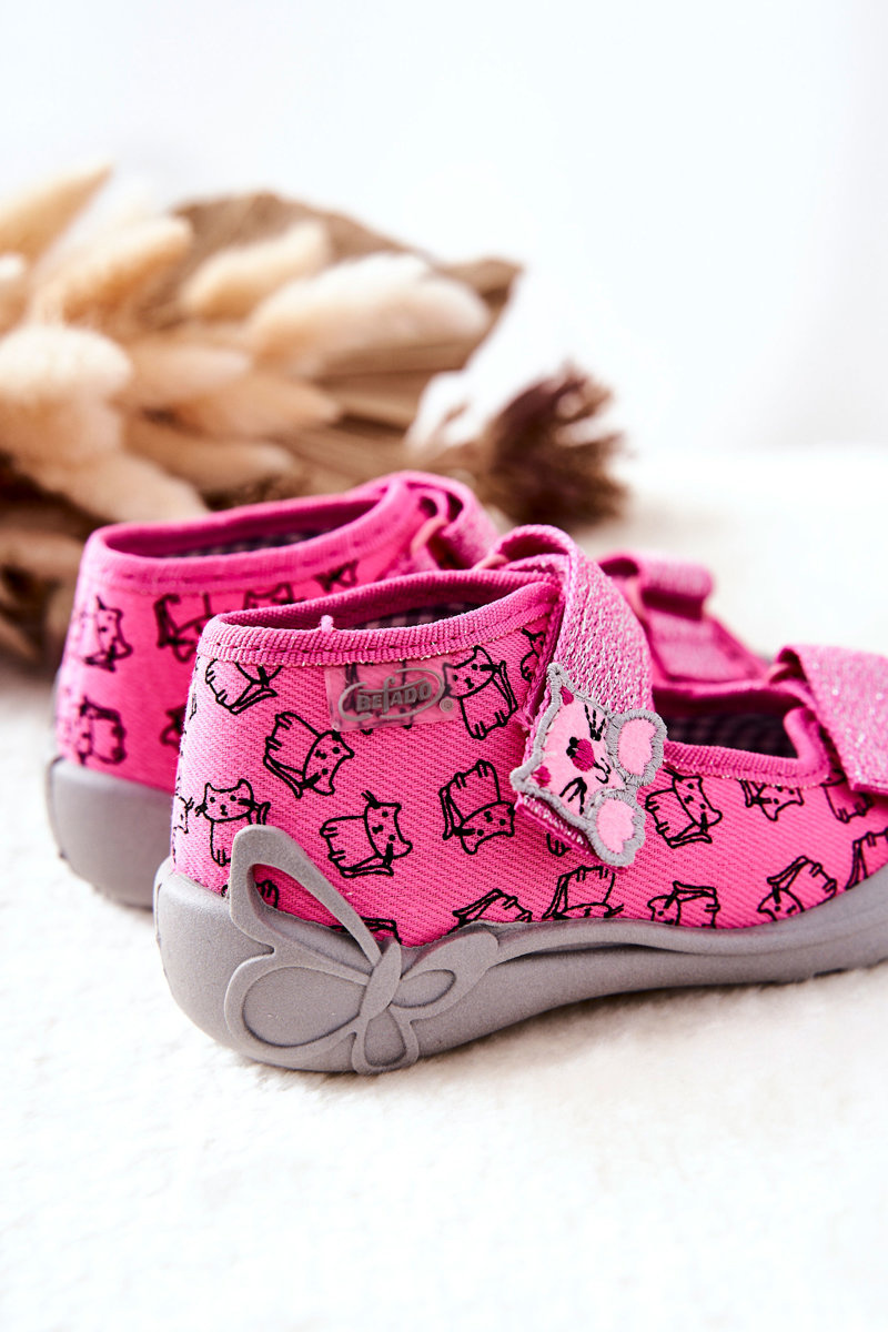 Pantofle Sandály Befado na suchý zip Kočky 242P103 Růžová
