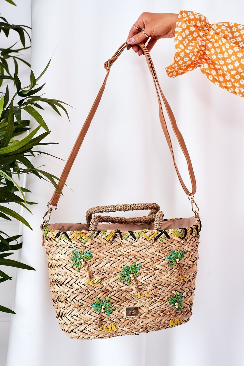 Pletená plážová taška NOBO. Vnější část tašky je vyrobena z 90% mořské trávy a 10% papíru. Vnitřek tašky je 100% polyester. Taška má jednu přihrádku na zip. Uvnitř je jedna kapsa na drobnosti. Taška má odnímatelný nastavitelný řemínek z ekokože. Nezapomeňte se podívat na celou naši kolekci NOBO kabelek.