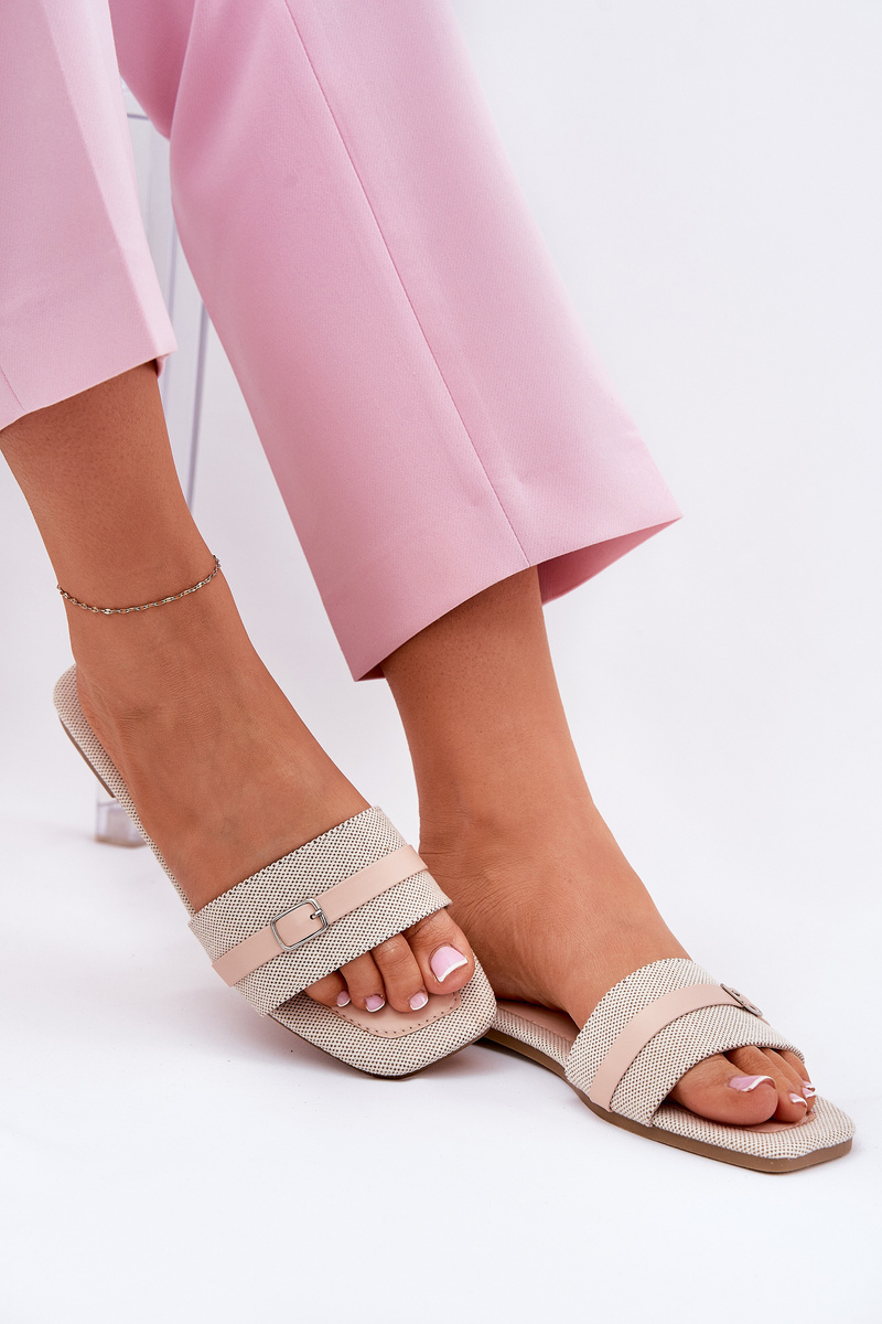 Ploché Dámské Pantofle S Páskem A Sponou Béžové Zilina