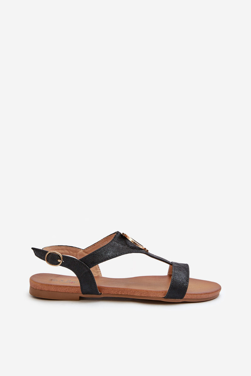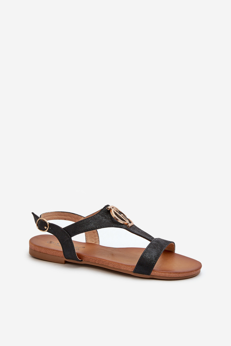 Ploché Dámské Sandály S Zlatou Ozdobou S.Barski KV27-051 Černé