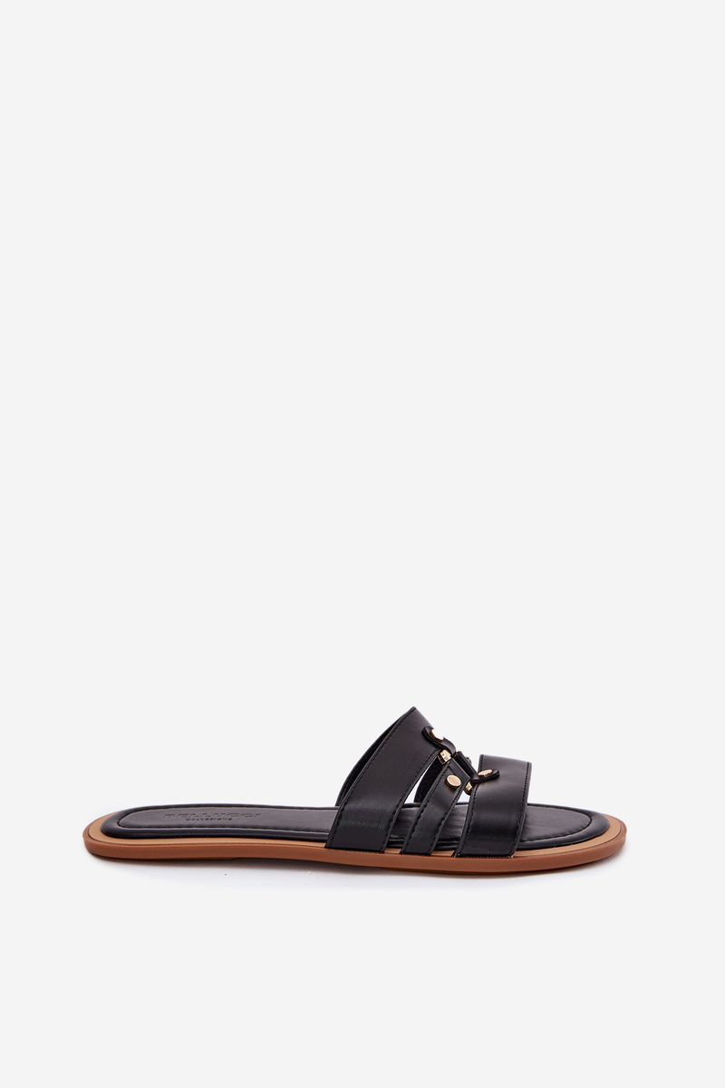 Ploché dámské sandály se zlatým detailem černé Noroti