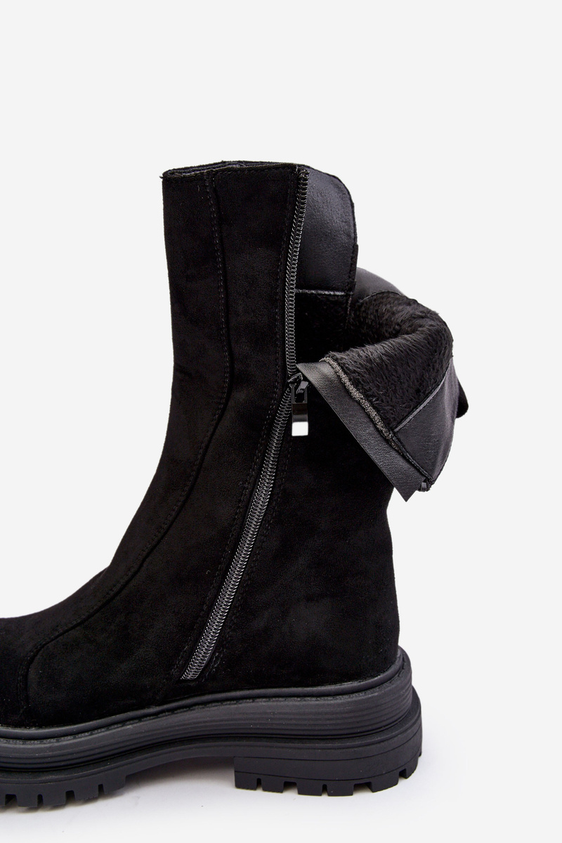 Dámské boty vyrobené z eko semiše. Uloženy na plochém, stabilním podpatku a platformě. Uvnitř zateplené obuvnickou vlnou. Zapínání na zip. Elastická vložka na holeni. Při výběru velikosti se řiďte tabulkou velikostí.